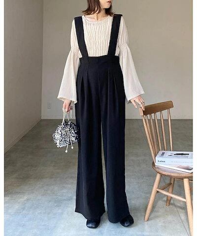 サロペット パンツ オールインワン レディース パンツ ワイドパンツ 春 秋 重ね着 レイヤード風 きれいめ 着痩せ カジュアル おしゃれ 体型カバー ゆったり 女性 お呼ばれ 可愛い 無地 おしゃれ