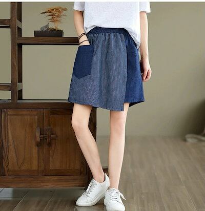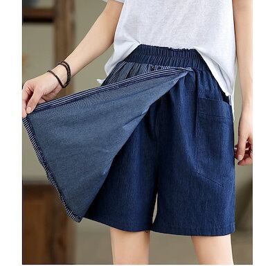デニムハーフパンツ デニムスカート ショートパンツ ボトムス ストライプ 大人可愛い パンツ 夏 レディース ワイドパンツ きれいめ ガウチョパンツ スカーチョ バギーパンツ 大きいサイズ テーパード