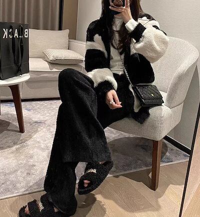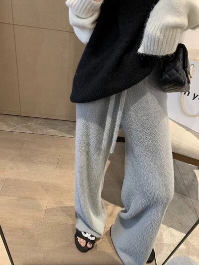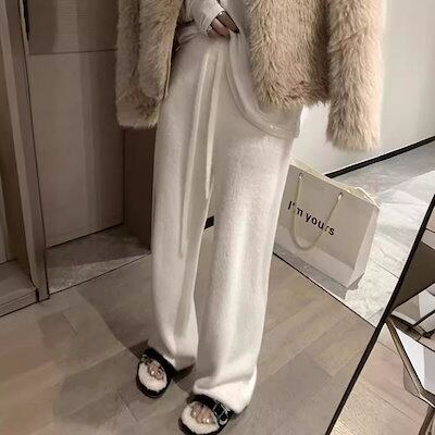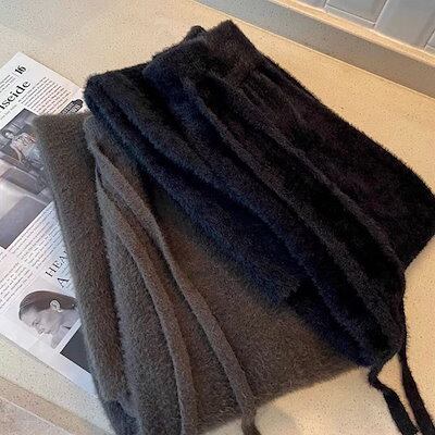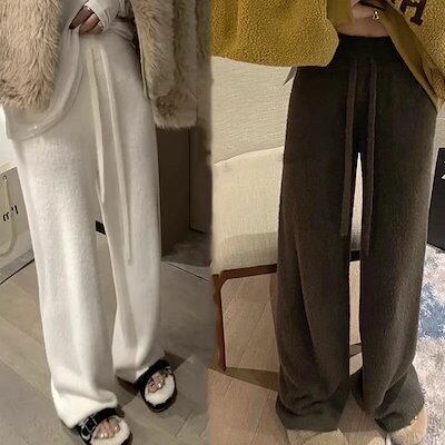 ワイドパンツ 秋冬 ストレートパンツ レディース ロングパンツ もこもこ ニット パンツ ロング丈 秋物 イージーパンツ 体型カバー 長ズボン ガウチョ マキシ丈 ボトムス カジュアル ふわふわ シャ