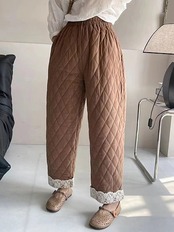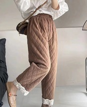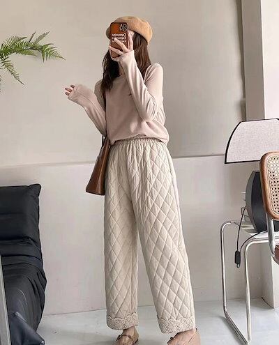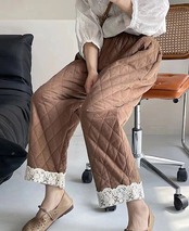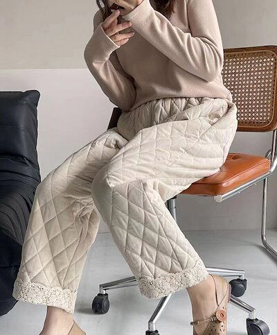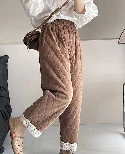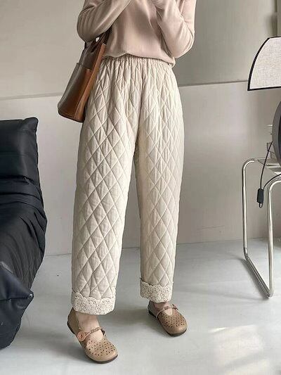 パンツ レディース 冬 中綿パンツキルティング テーパードパンツ 秋冬 ロングパンツ 中綿パンツ ワイドパンツ ウエストゴム ポケット付き 無地 レース ボトムス 寒 保温 暖かい 防寒 ゆったり