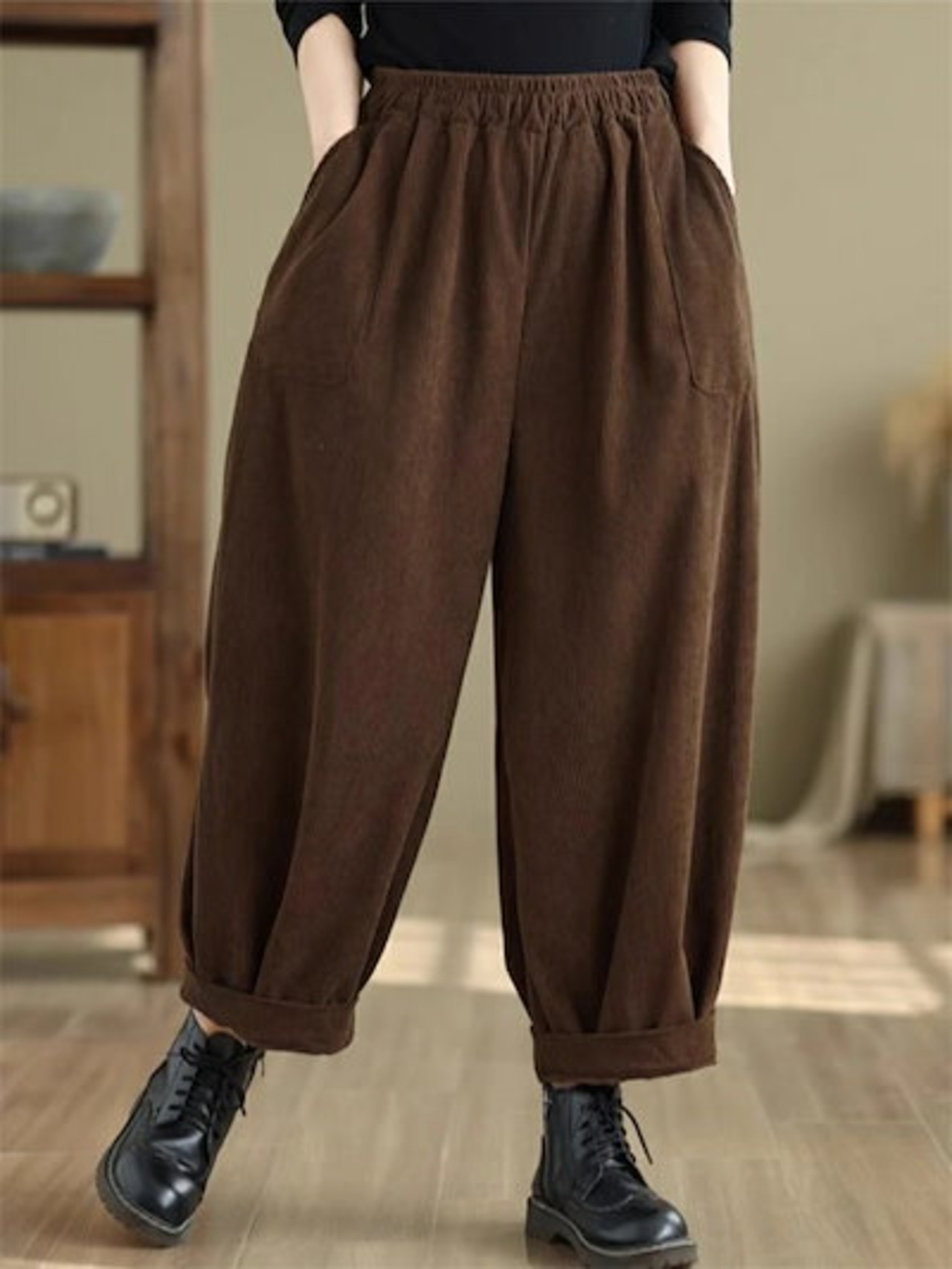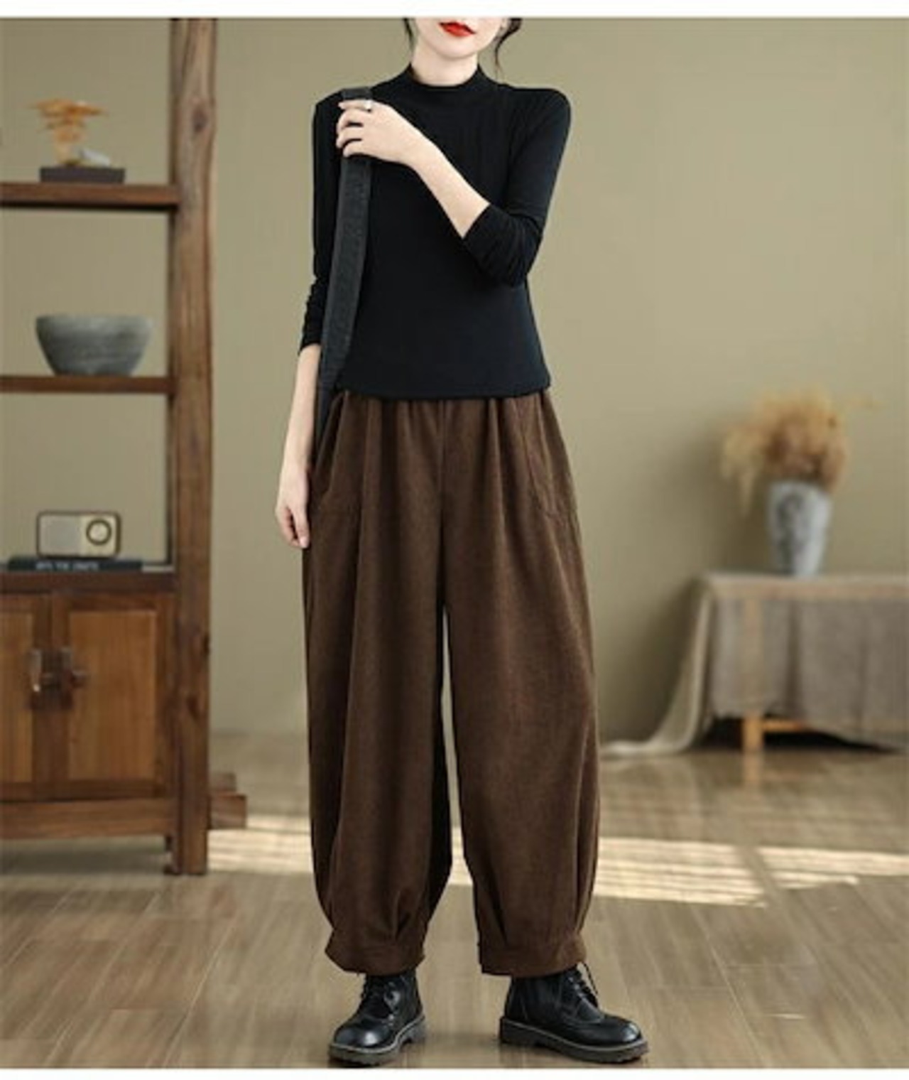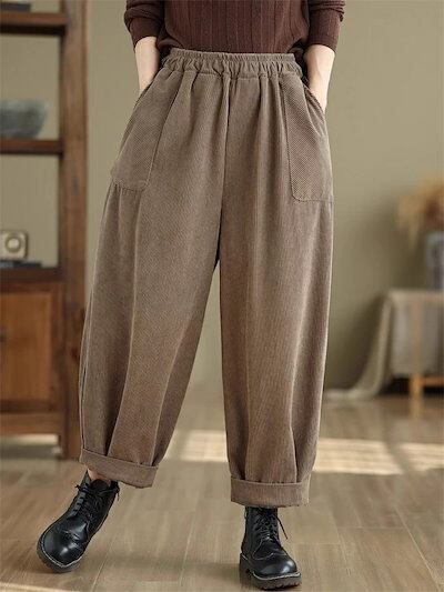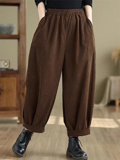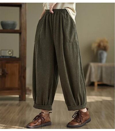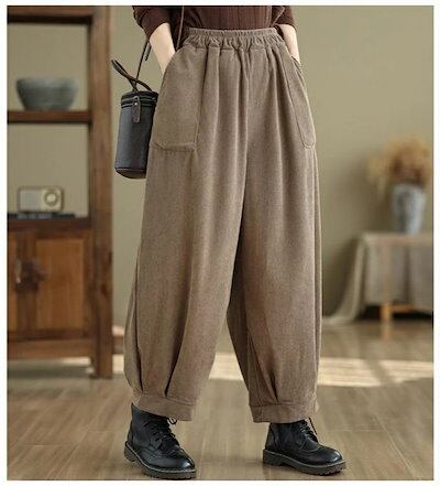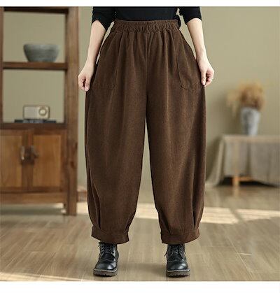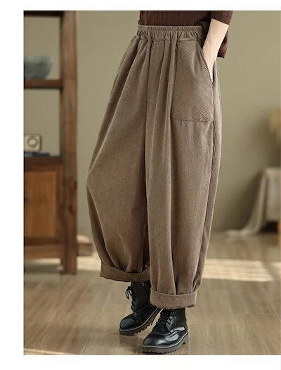 バルーンパンツ 秋冬 コーデュロイパンツ レディース パンツ ゆったり ワイドパンツ ウエストゴム 美脚 リラックス 防寒 パンツ 暖い カジュアル ボトムス 体型カバー バギーパンツ イージーパンツ
