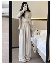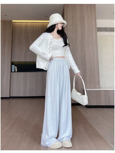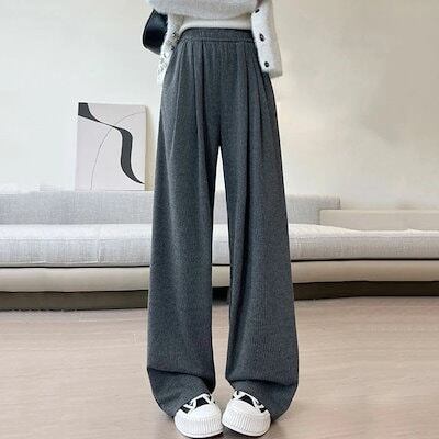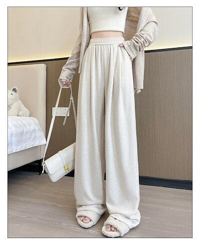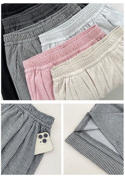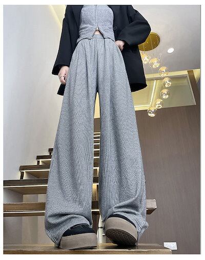 ワイドパンツ レディース ストライプパンツ ロングパンツ 秋冬 ストライプ ふわふわ ウエストゴム リラックス カジュアル ボトムス ハイウエスト イージーパンツ 体型カバー ゆったり かわいい きれ