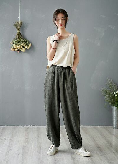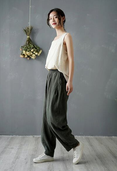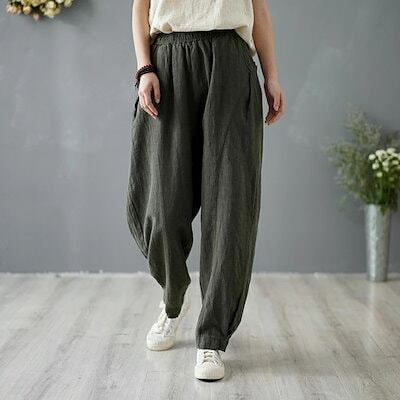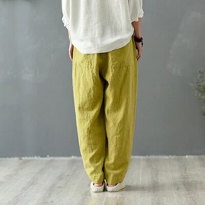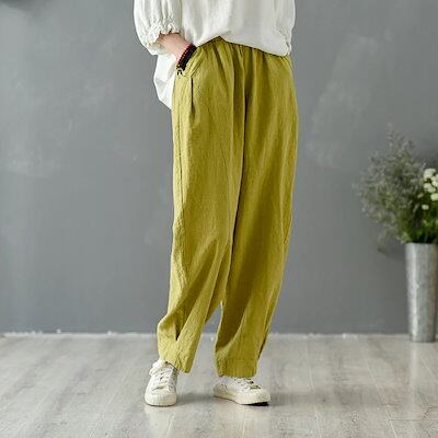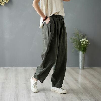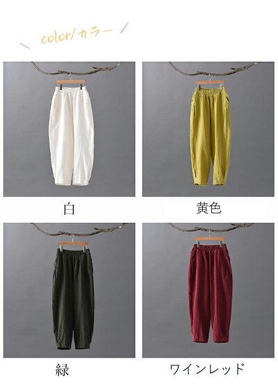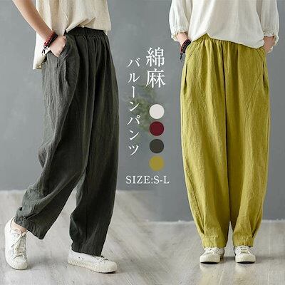 リネン混 サルエルパンツ レディース ワイドパンツ アラジンパンツ コットンリネン バルーンパンツ エスニック ボトムス ナチュラル 体型カバー 着やせ カジュアル シンプル 無地 大人可愛い