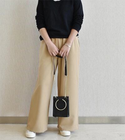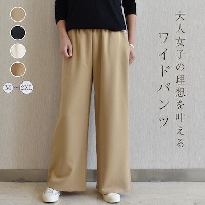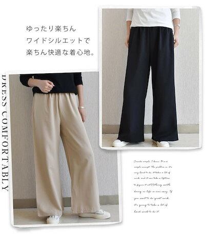 落ち感ありワイドパンツ レディース 春 きれいめ ボトムス ロング丈 大きいサイズ 柔らか ウエストゴム ゆったり 通勤 バギーパンツ イージー 美脚 体型カバー 大人 カジュアル オフィス OL