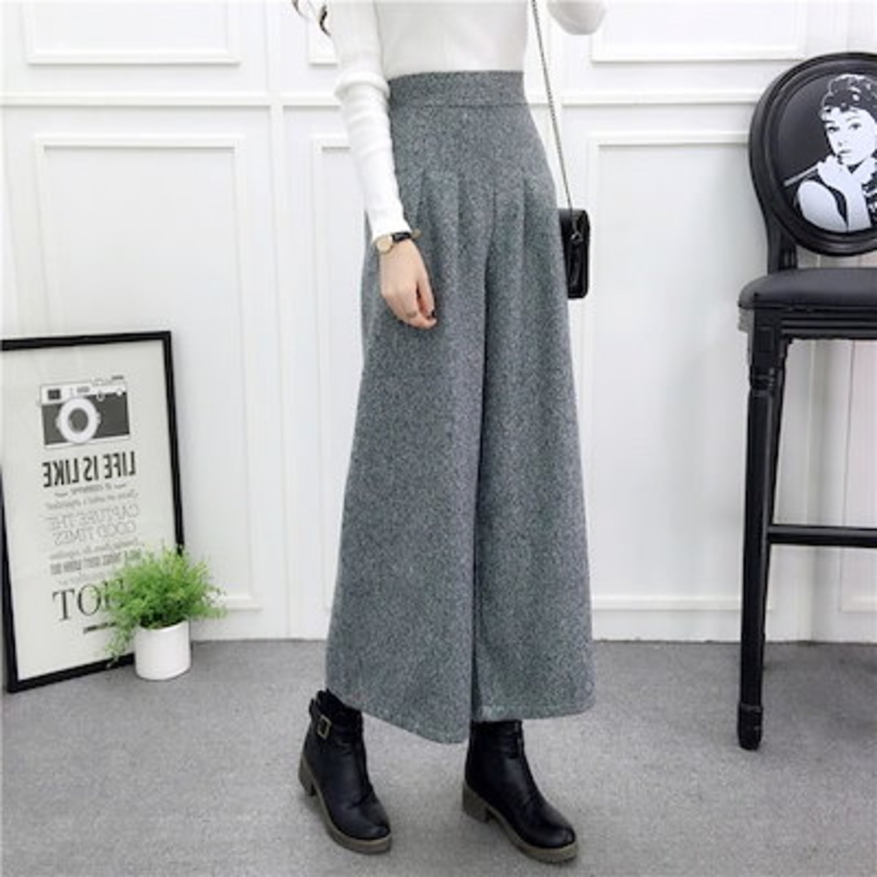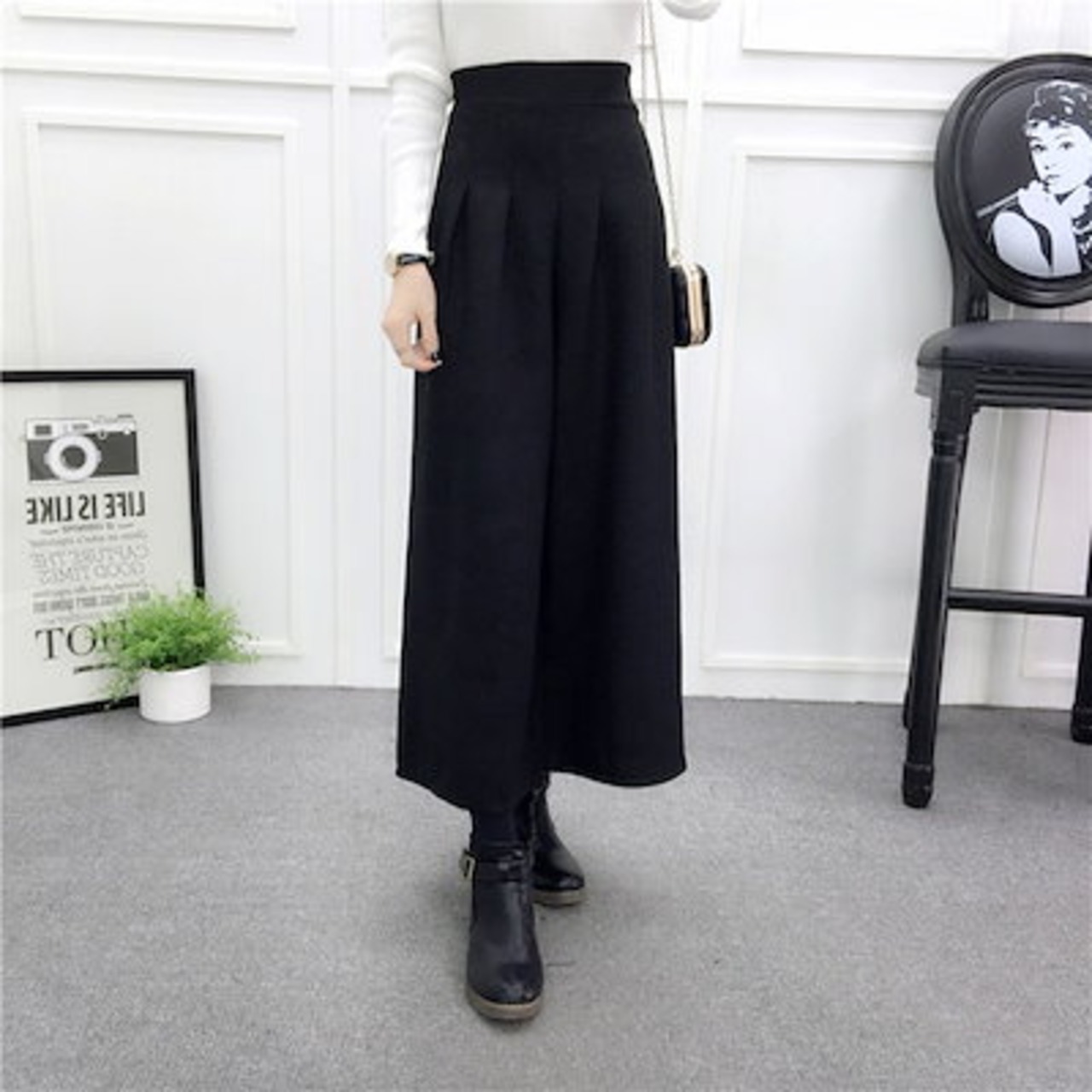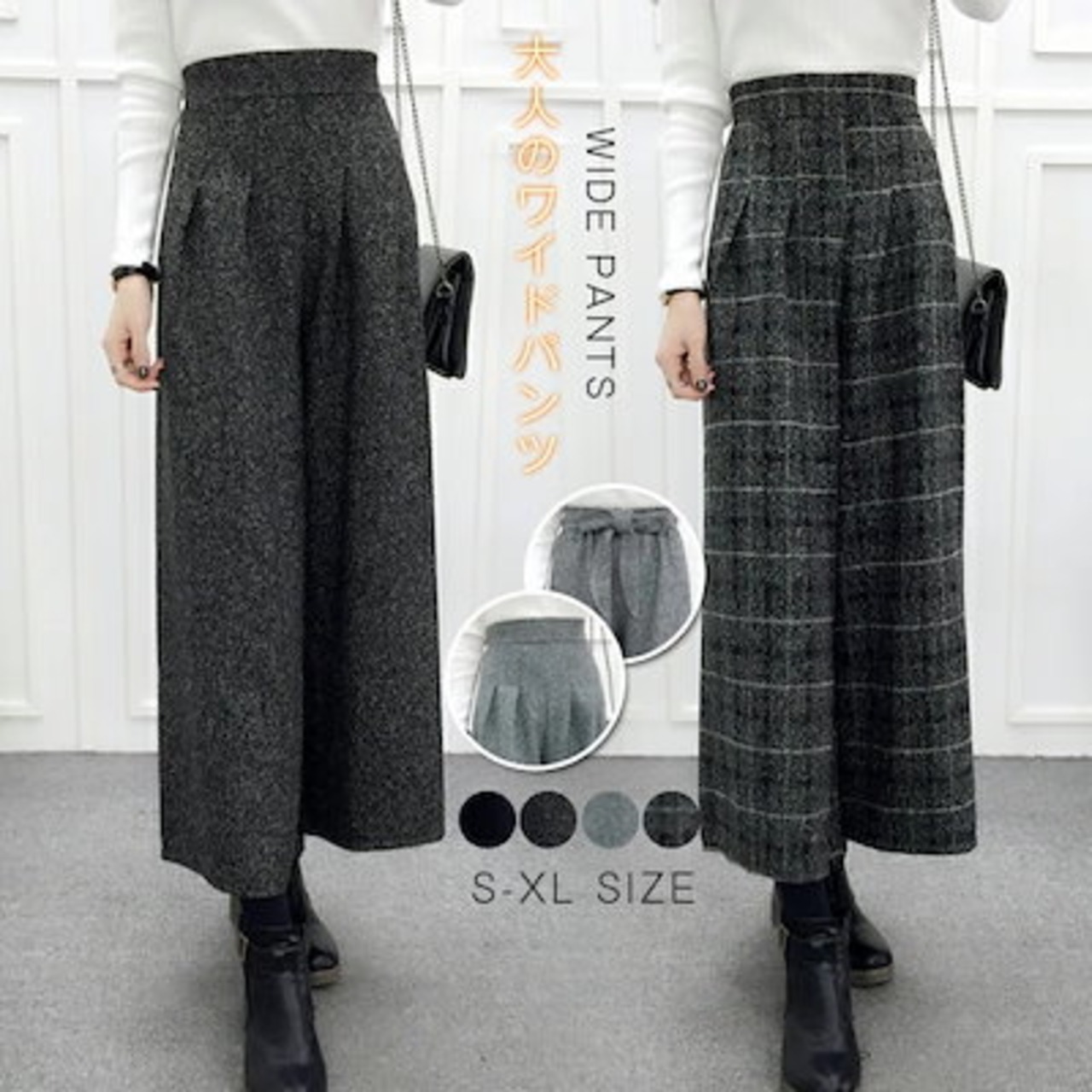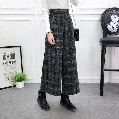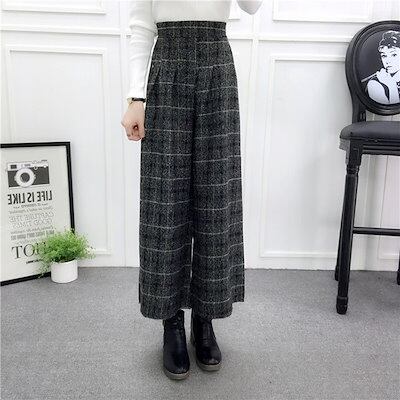 ワイドパンツ 秋冬 レディース きれいめ イージーパンツ チェック ウエストゴム ボトムス スカンツ ロング丈 スカンツ プリーツパンツ フレアパンツ クロップド 大きいサイズ 体型カバー ゆったり