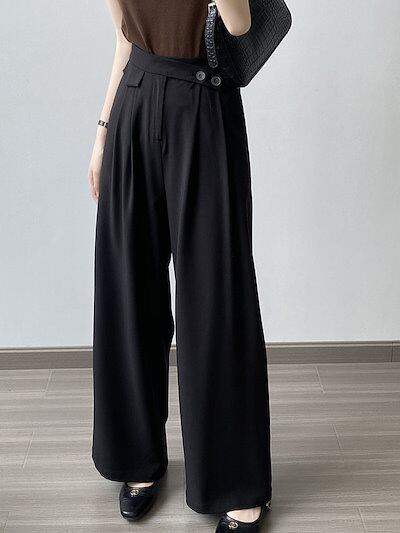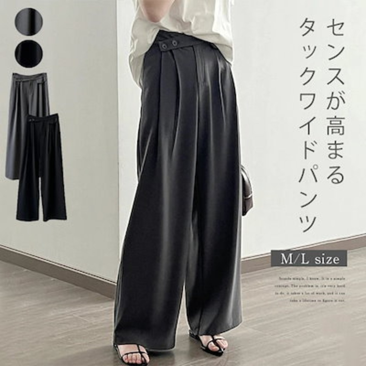 タックワイドパンツ レディース パンツ ワイドパンツ ロングパンツ 春 秋 ゆったり 体型カバー 着?せ テーラード ボトムス ズボン カジュアル 通勤 仕事 ビジネス オフィス 事務所 OL 上