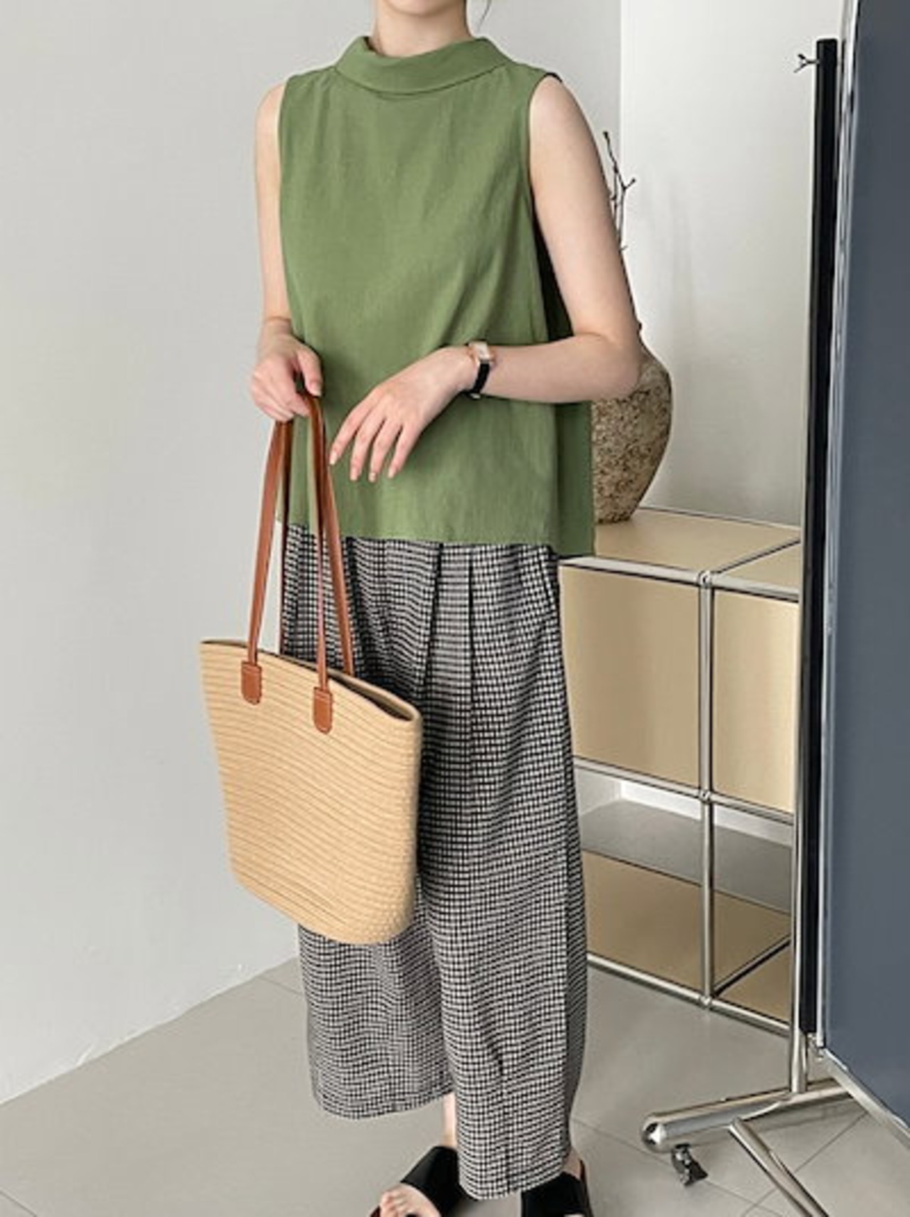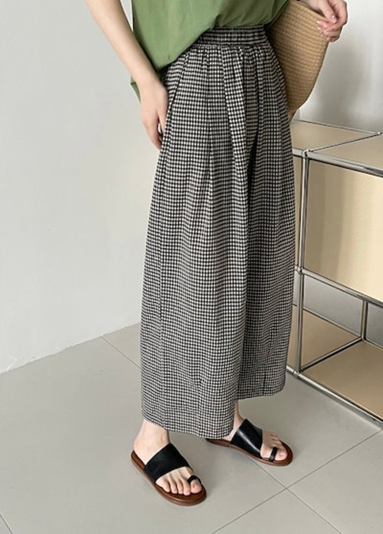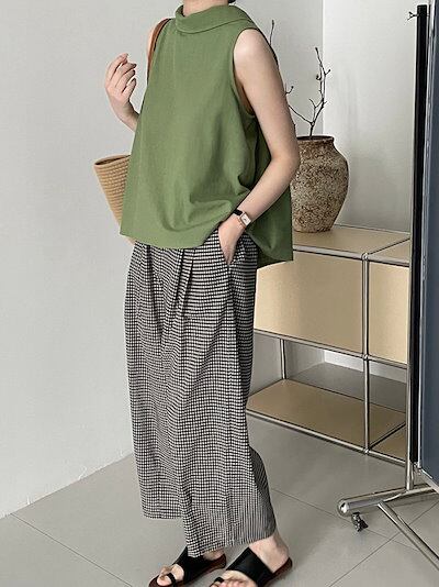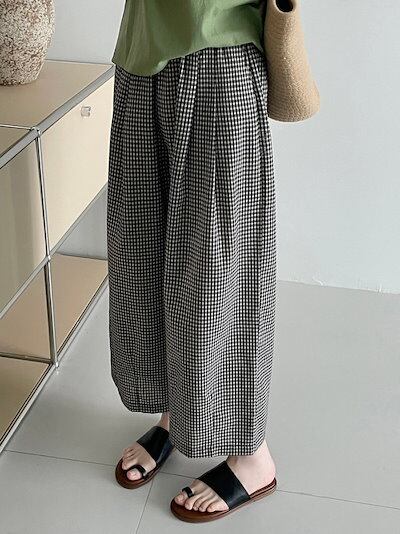 ワイドパンツ レディース アンクル丈 ギンガムチェック柄 イージーパンツ 綿麻風 パンツ ボトムス 大人カジュアル ナチュラル 森ガール ズボンバギー ウエストゴム 大きいサイズ ゆったり 体型カバー