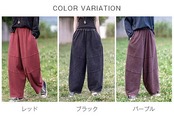 ワイドパンツ レディース ワイド パンツ ガウチョパンツ 切り替え 長ズボン ボトムス ロングパンツ 無地 綿混 ウエストゴム ゆったり 大人 カジュアル ナチュラム 体型カバー 着痩せ ゆる ブラッ