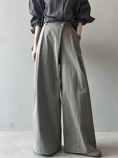 ワイドパンツ レディース 秋 パンツ アシメ ゆるフィット ロングパンツ ストレートパンツ ボトムス 通勤 大人 リラックス オフィス フォーマル ゆったり 楽ちん 体型カバー 美脚 カジュアル 無地