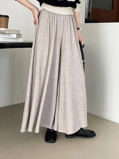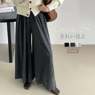 キュロットスカート ワイドパンツ レディース フレア 秋 冬 ニット パンツ ロングパンツ ボトムス リラックス 無地 オフィス フォーマル ゆったり 体型カバー フリーサイズ 美脚 キレイめ 落ち感
