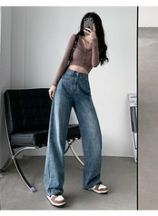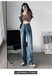 ストレートワイドパンツ デニムパンツ レディース パンツ ジーパン 大人カジュアル デニムワイドパンツ ボトムス ロング 長ズボン ジーンズ ハイウエスト 大きいサイズ ゆったり 体型カバー 柔らか