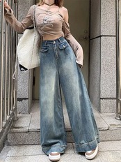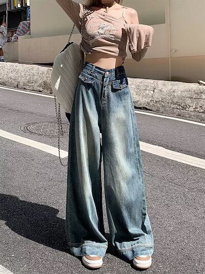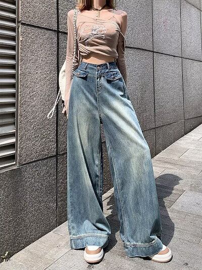 デニムワイドパンツ レディース ワイドパンツ デニムパンツ フレアパンツ ジーンズ ジーパン ロングパンツ 大きいサイズ ゆったり ハイウエスト バギーパンツ ボトムス ロング丈 ズボン カジュアル