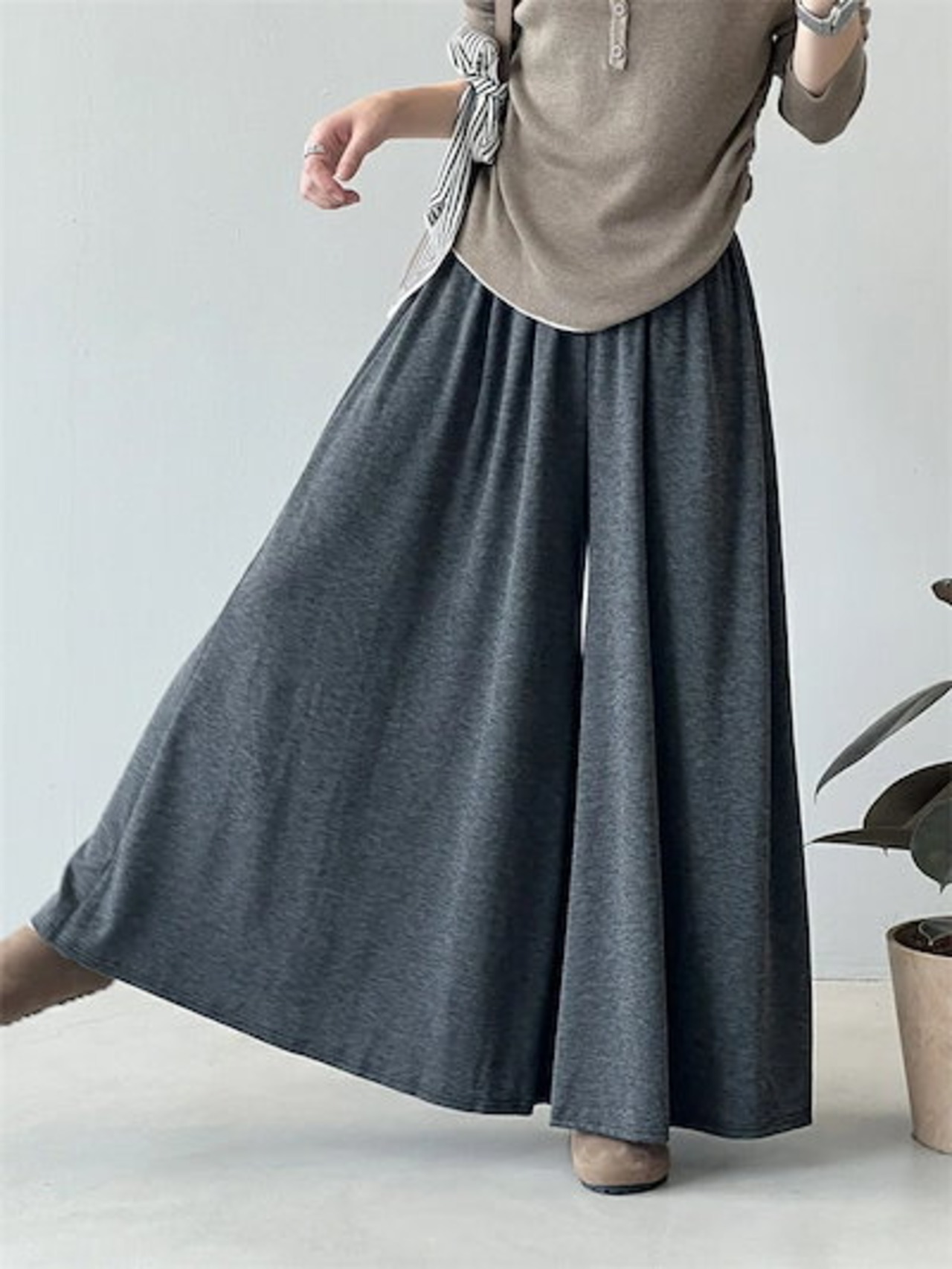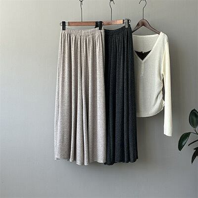 ワイドパンツ 秋 ガウチョパンツ スカート見える レディース フレアパンツ 柔らか ロングパンツ ウエストゴム バギーパンツ 大きいサイズ ゆったり リラックス 着心地よい ルームウェア オ