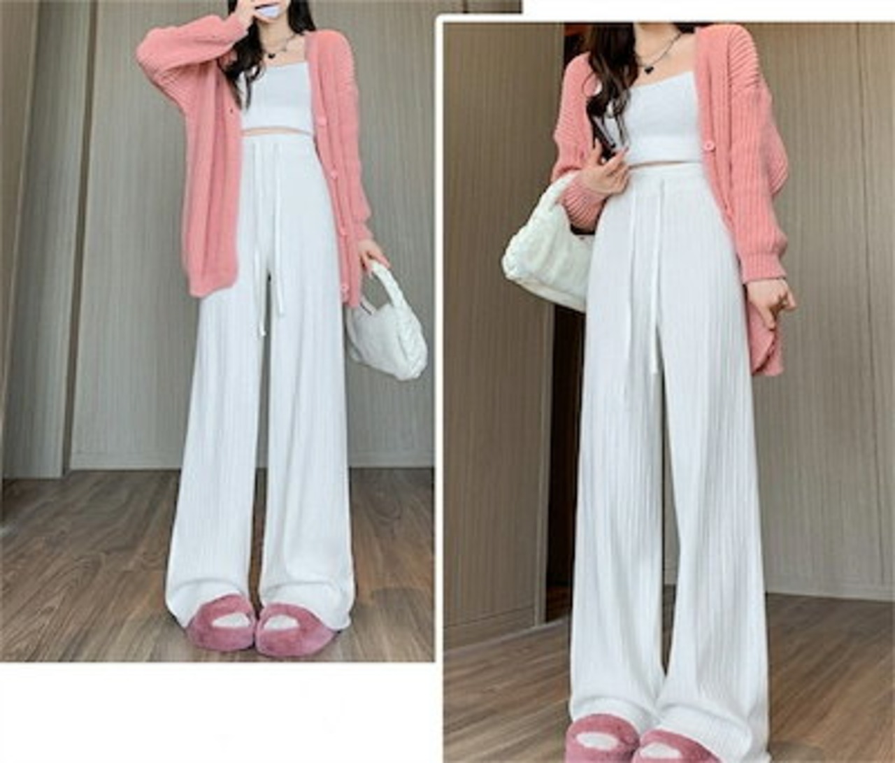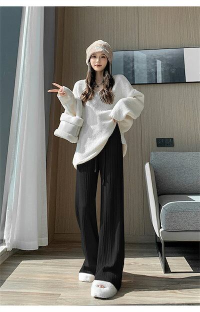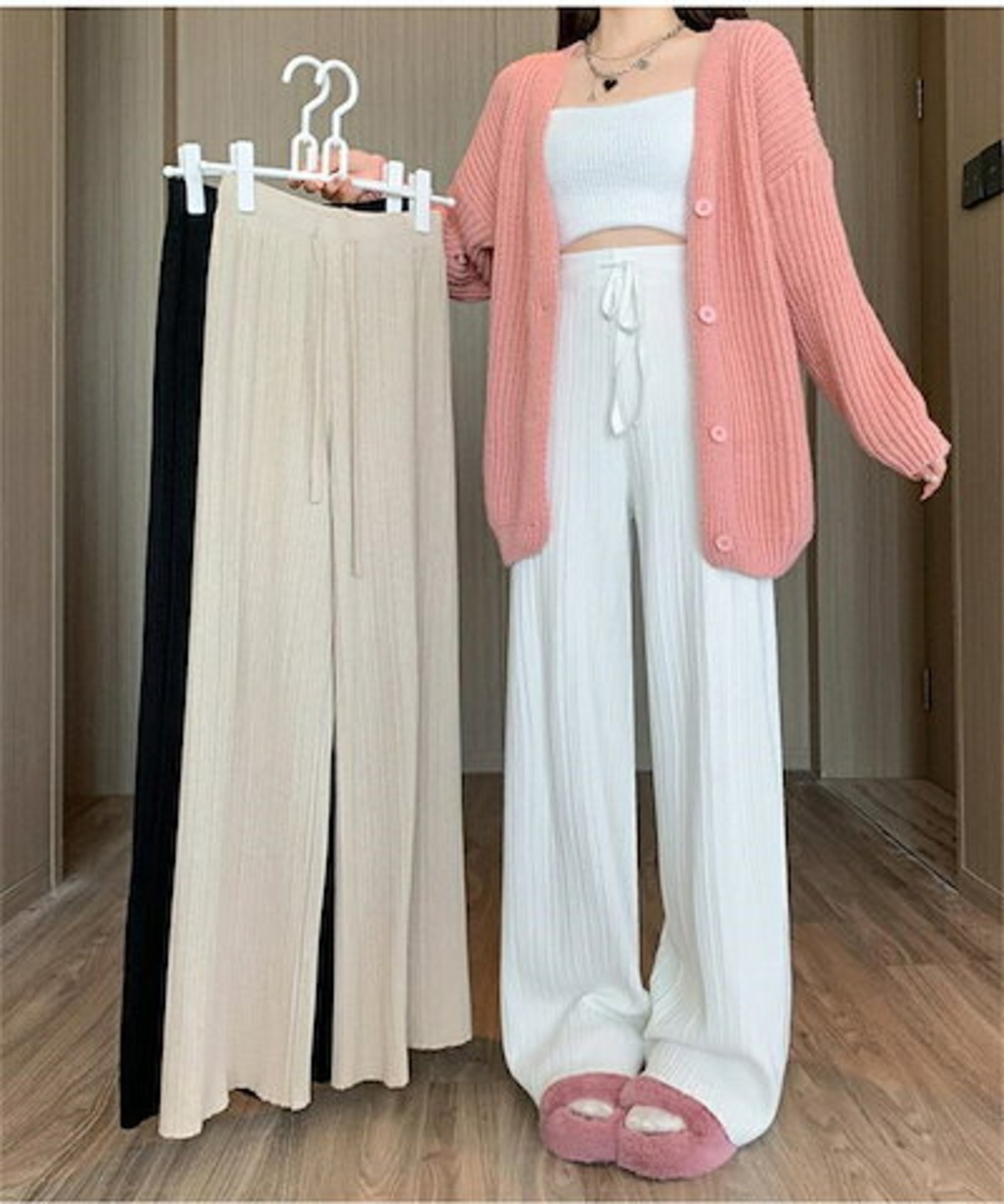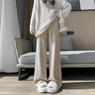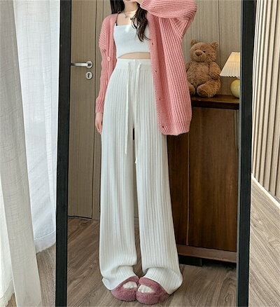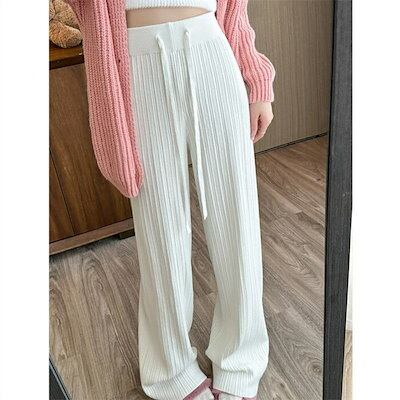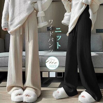 ワイドパンツ ニットパンツ レディース ニット ロングパンツ ウエストゴム 美脚 リラックス 暖い カジュアル ボトムス ケーブル編み ニットパンツ バギーパンツ イージーパンツ ゆったり カジュアル