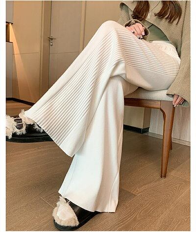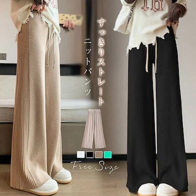 ワイドパンツ 秋冬 ニットパンツ レディース ニット ロングパンツ ウエストゴム 美脚 リラックス 暖い カジュアル ボトムス ニットパンツ バギーパンツ イージーパンツ ゆったり カジュアル
