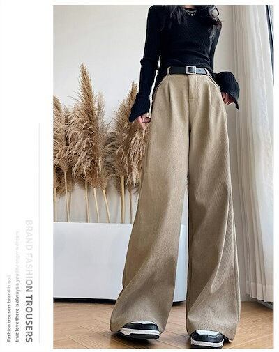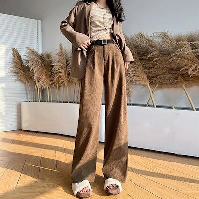ワイドパンツ 秋冬 コーデュロイパンツ 裏起毛パンツ レディース ロングパンツ ウエストゴム 美脚 裏ボア 防寒 暖い カジュアル ボトムス 体型カバー バギーパンツ イージーパンツ ゆったり 通学