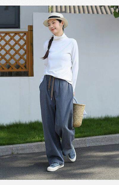 ワイドパンツ レディース イージーパンツ きれいめパンツ コットンパンツ 綿 低身長 高身長 大きいサイズ 無地 ハイウエスト パンツ ボトムス ロングパンツ ゆったり ズボン カジュアル 通勤 仕事