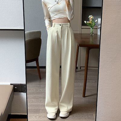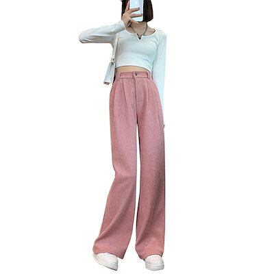 セルフカットパンツプリーツワイドパンツ レディースコーデュロイワイド脚ズボン女性春冬高腰ゆったりストレート感カ スラックスパンツ ズボン 韓国 大きいサイズ