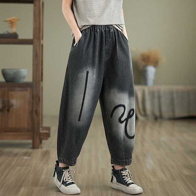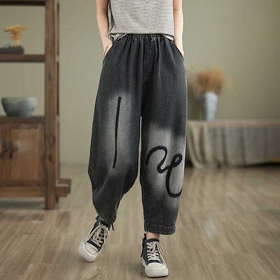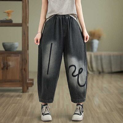 「ファットガール」 2024夏新品 レトロ デニム ワイドパンツ 薄手 九分丈 大きいサイズ 体型カバー レディース ロングパンツ メガ割