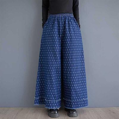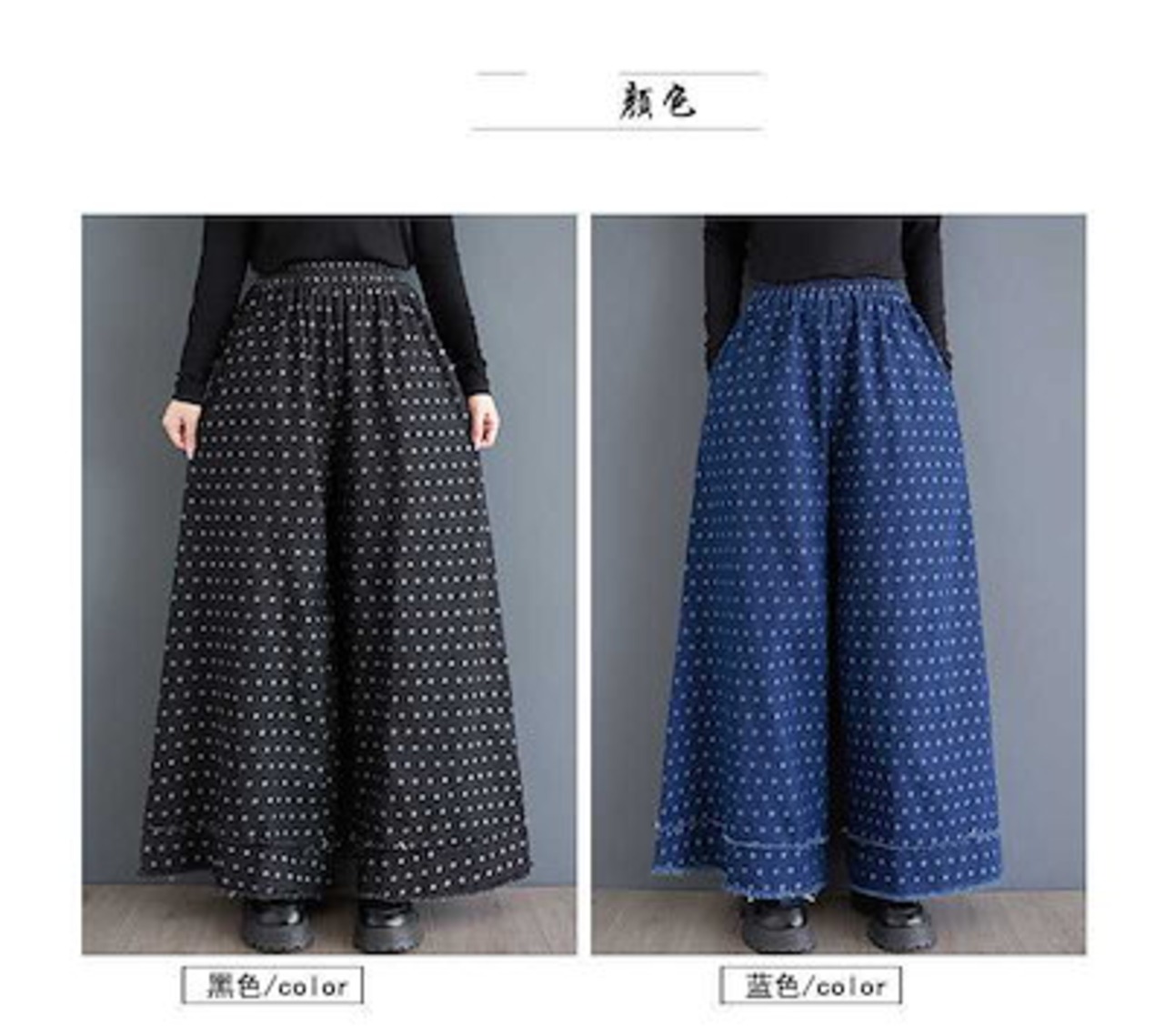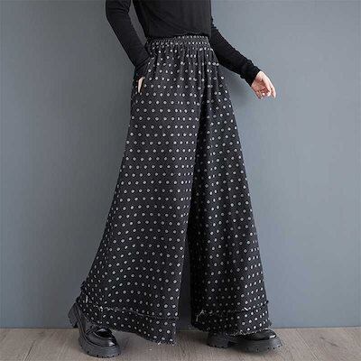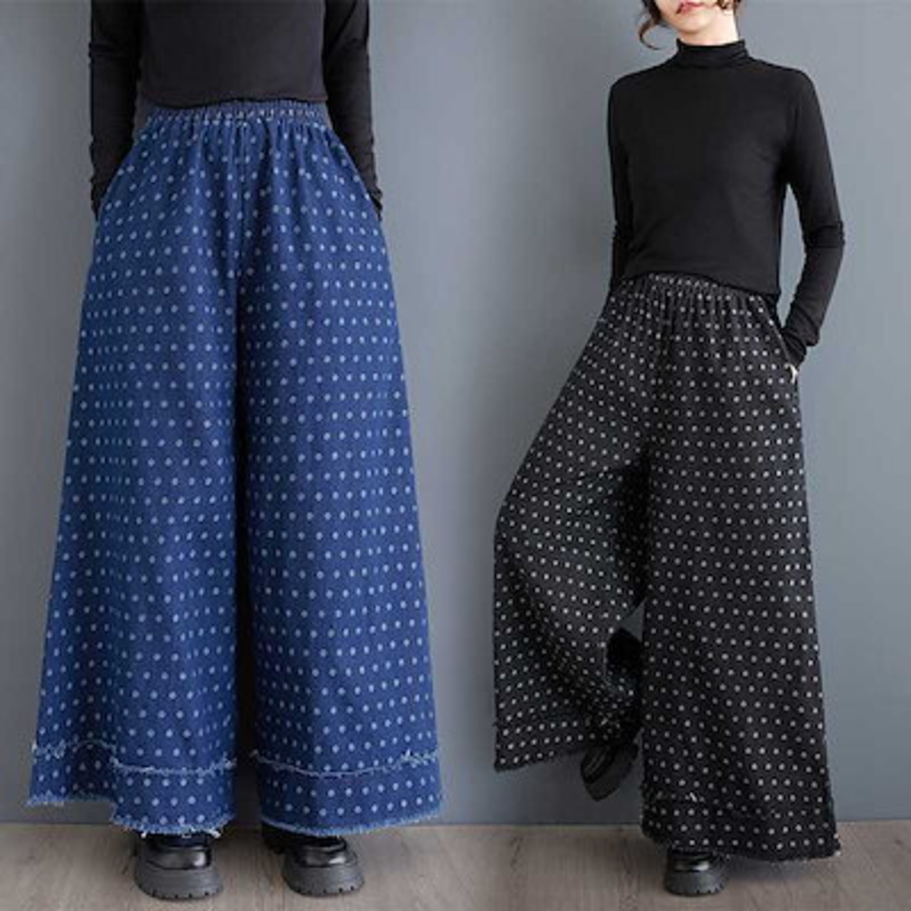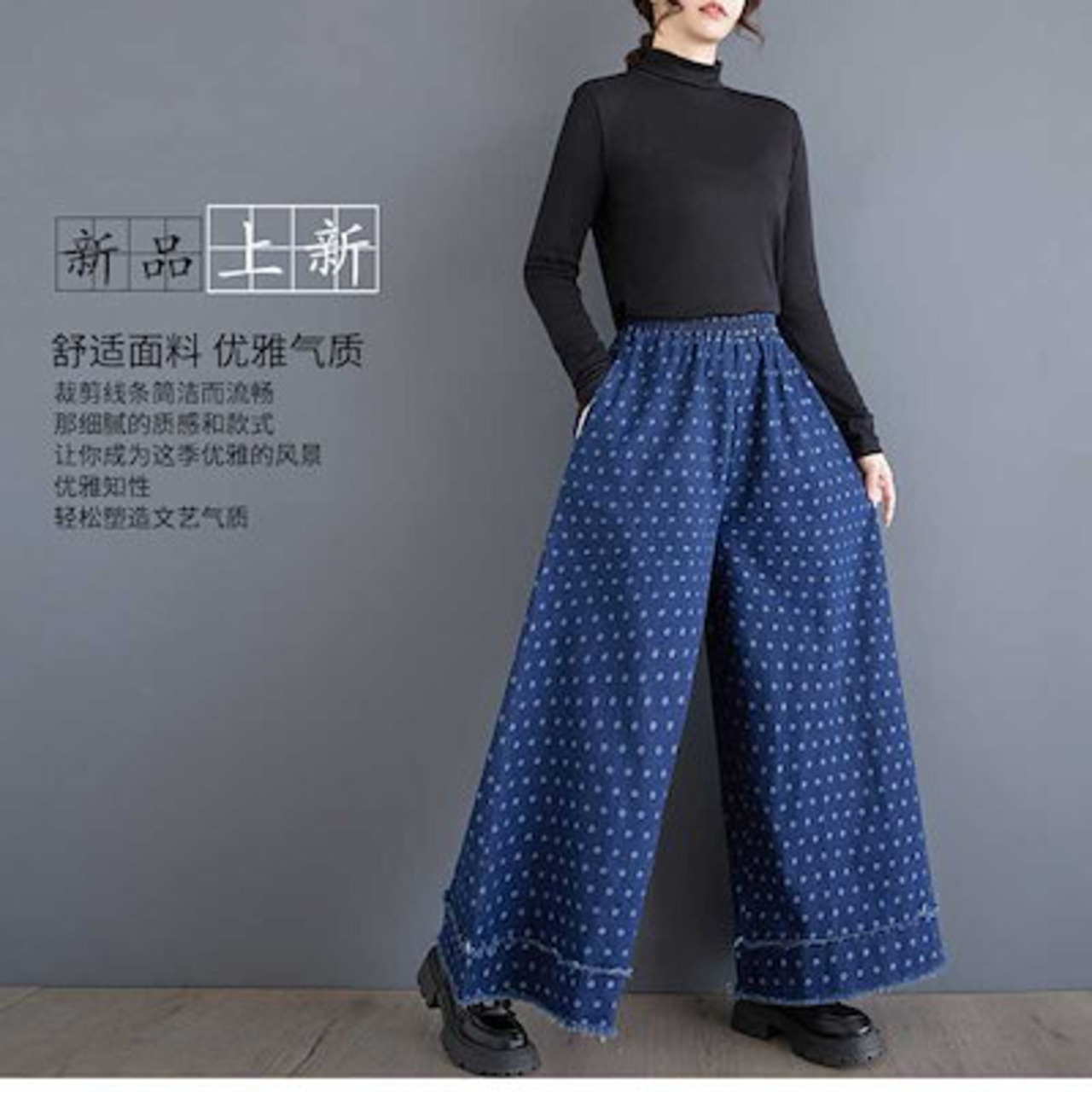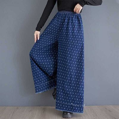 「ファットガール」 2024秋冬新品 水玉 デニム ワイドパンツ 大きいサイズ 体型カバー レディース ゴム レトロ ジャージ ロングパンツ メガ割
