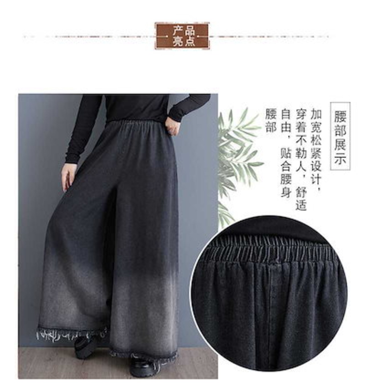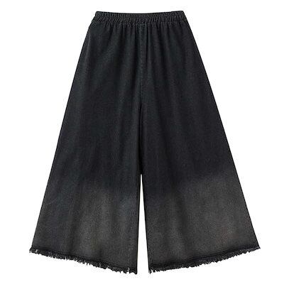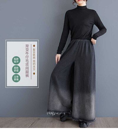 「ファットガール」 2024秋新品 デニム ワイドパンツ 大きいサイズ 体型カバー レディース フレア ゴム グラデーション ジーンズ ロングパンツ メガ割
