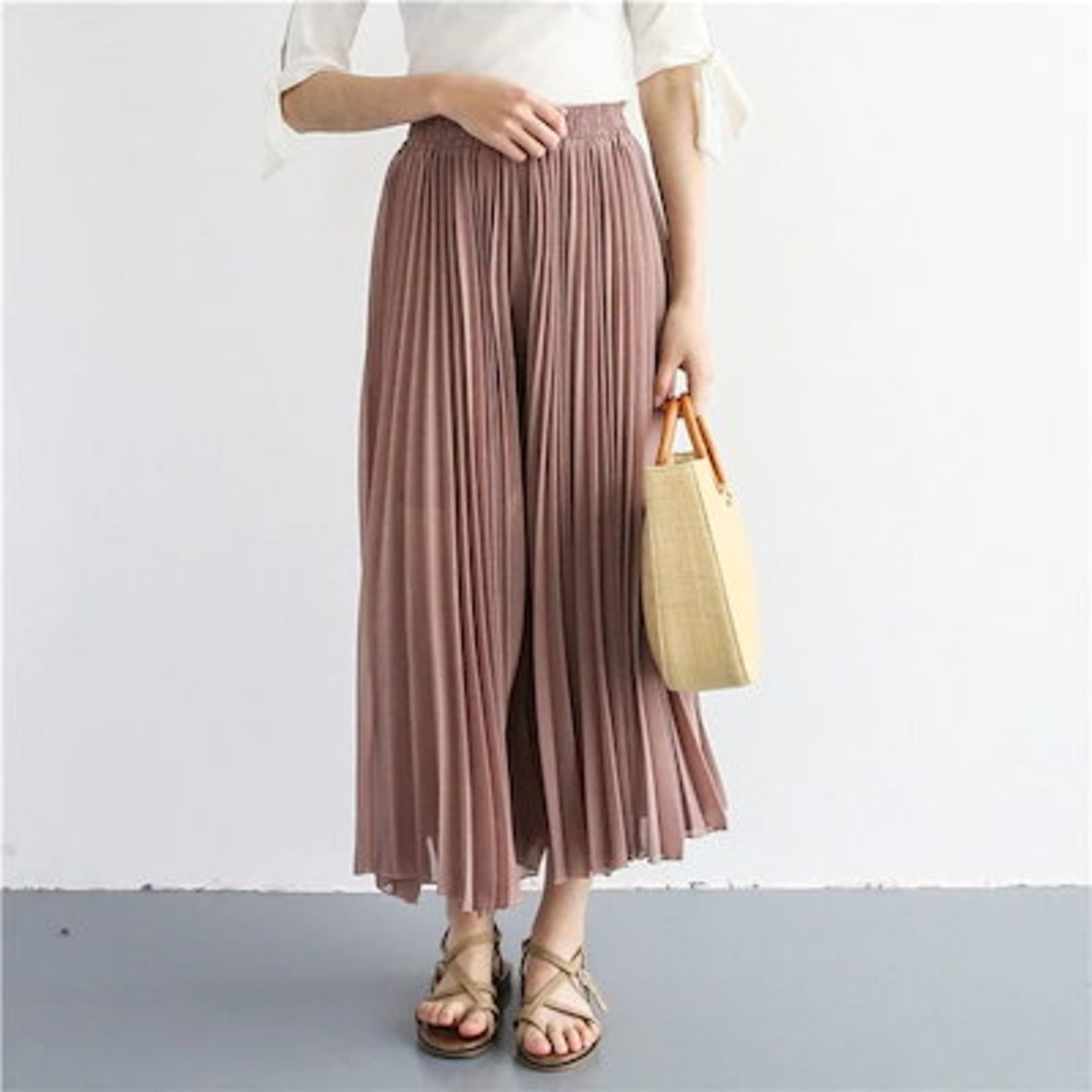 お買い得 ワイドパンツ ワイドレディース小柄シフォンプリーツ九分ズボンガウチョ母の日 早い者勝ち