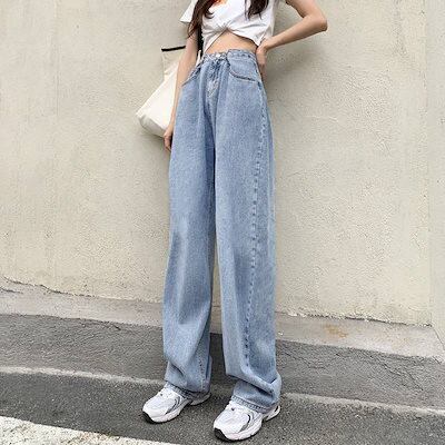 デニムパンツ レディース 韓国ファッション ロングパンツ ワイドパンツ パンツ レディース スキニーパンツ モップパンツ 脚長効果!スキニーパンツ ひんやりボトムス