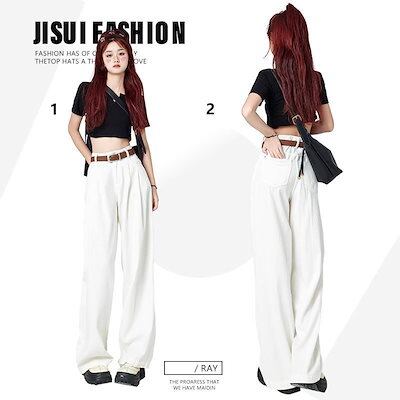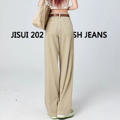 デニムパンツ 韓国ファッション デニムボトムス 秋 ゆったり パンツ レディース ハイウエストロングパンツ 体型カバー 着痩せ デニム ワイドパンツ体型カバー