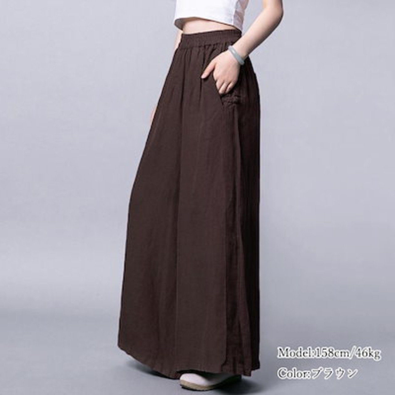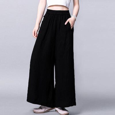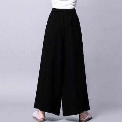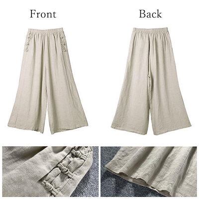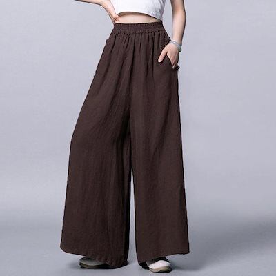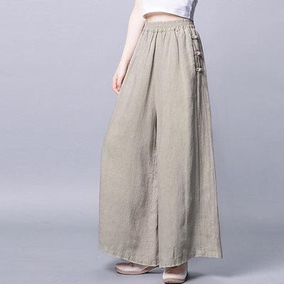 綿麻風ワイドパンツレディースリネンパンツ