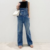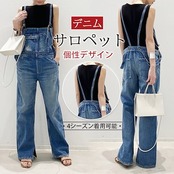 デニム ワイドパンツ サロペット 春 秋 デニム 韓国ファッション 流行り カジュアル 百掛け ストレート ロングパンツ オーバーオール ゆったり 着やせ 個性デザイン 体型カバー