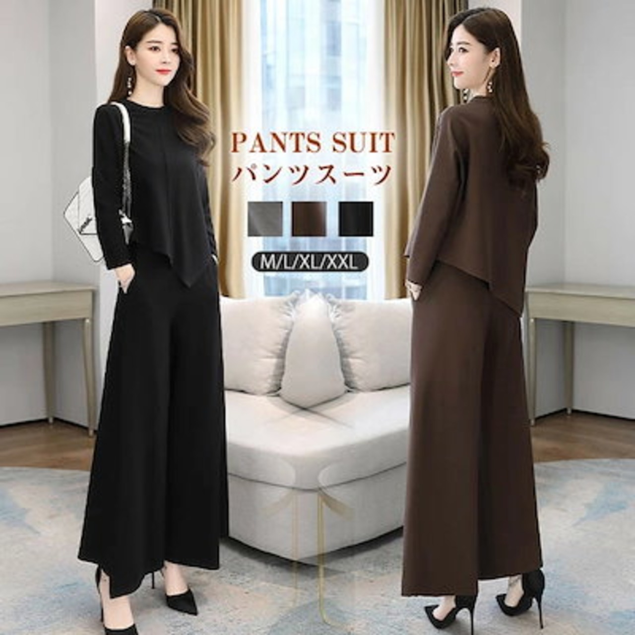 セットアップ レディース パンツスーツ ロングパンツ ワイドパンツ パンツドレス スーツ ママ 上下セット パンツ 通勤 オフィス ビジネス 入学式 卒業式 入園式 卒園式 春 秋 冬
