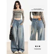 デニムパンツ新作 おしゃれ 百掛け ロングパンツ レディース ワイドパンツ カジュアルパンツ モップパンツ 快適 デニムボトムス スキニーパンツ