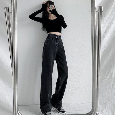 2025新作 カジュアル レディースジーンズ ロングパンツ ロングデニム ハイウエスト デニムボトムス ワイドパンツ 脚長効果!スキニーパンツひんやりボト デニムパンツ