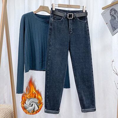 レディースジーンズ 裏起毛 厚手 暖かい ロングパンツ ロングデニム ハイウエスト デニムボトムス スキニーパンツ ワイドパンツ 裏起毛ファッション デニムパンツ