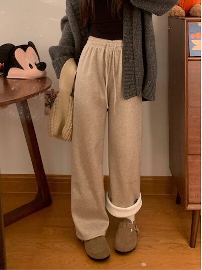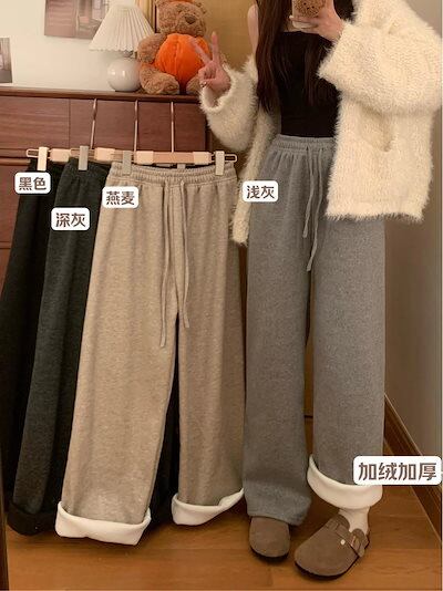ストレート ルーズ 裏起毛ファッション レディース ズボン ジーンズ 冬 ワイドレッグ