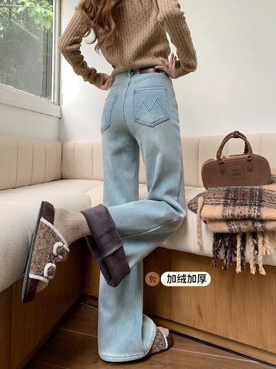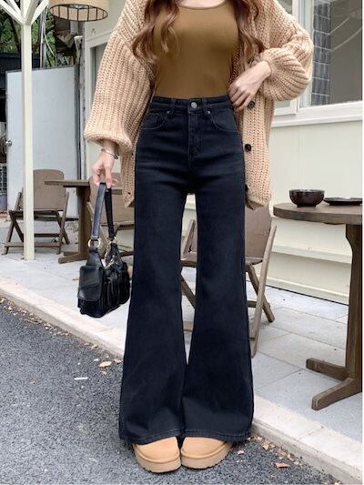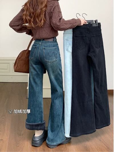 ジーンズ 裏起毛ファッション ワイドレッグ レディース 冬 ドレープ