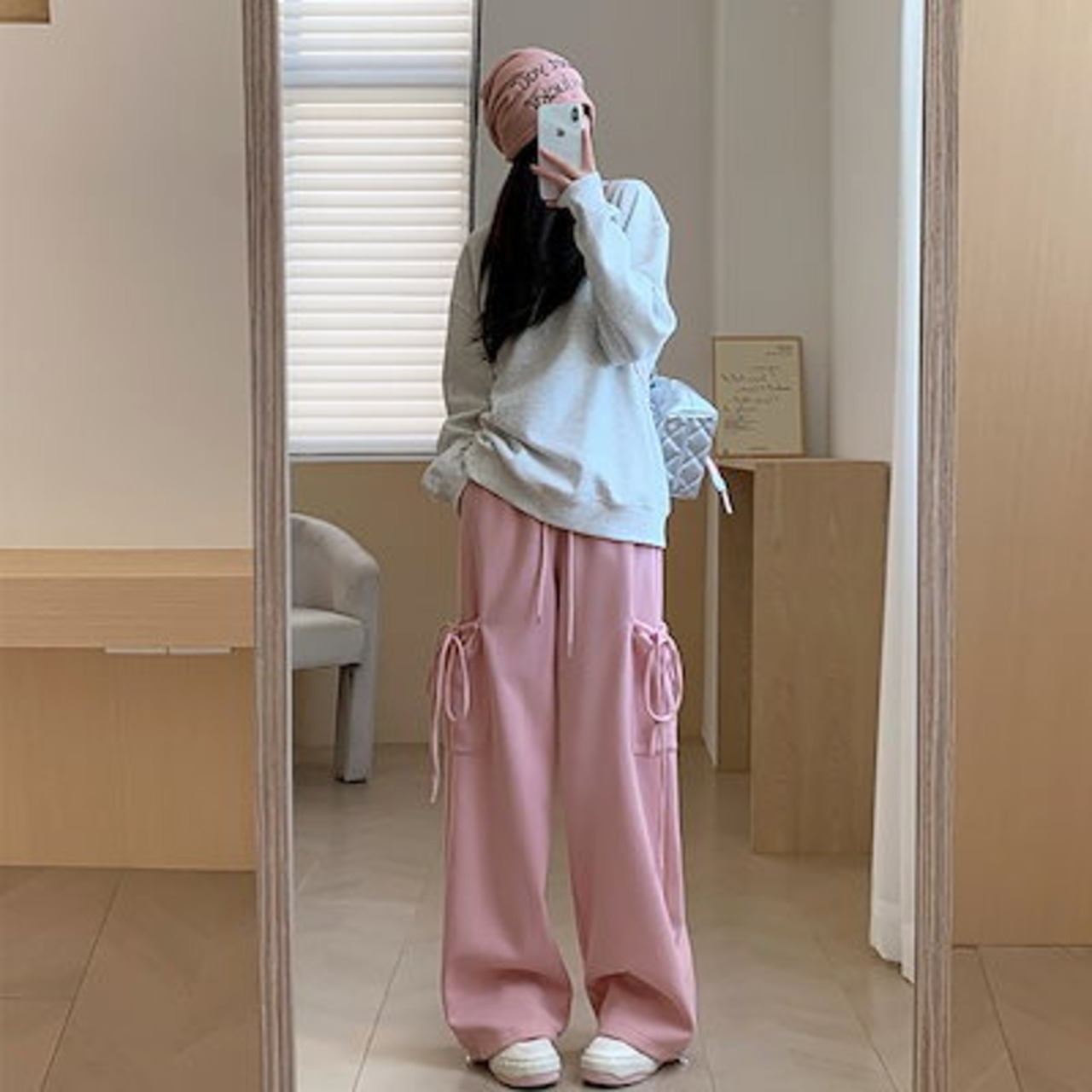 作 ロングパンツ レディース スウェットパンツ ノーマルタイプ パンツ ワイドパンツ 体型カバー 着痩せ ゆったり 韓国ファッション