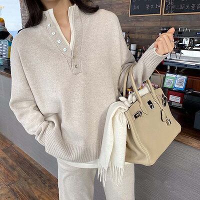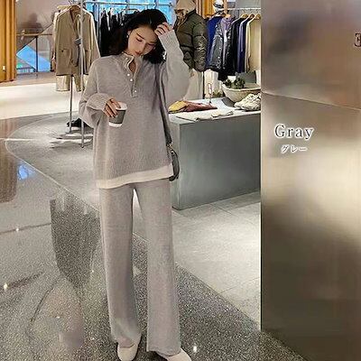 ニットセットアップ レディース 秋冬 セットアップ ニット パンツ 大きいサイズ ロングパンツ セーター プルオーバー ワイドパンツ大人可愛い 可愛い かわいい おしゃれ 普段使い ゆったり 無地