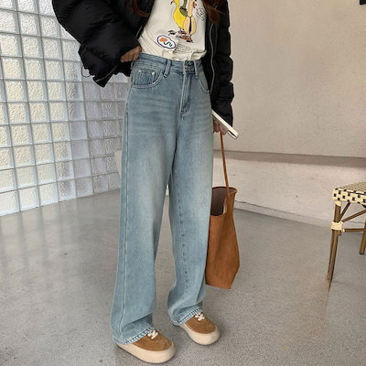 秋 冬 新作 裏起毛 デニムパンツ ロングパンツ レディース ワイドパンツ 裏起毛パンツ 体型カバー 着痩せ ゆったり 韓国ファッション