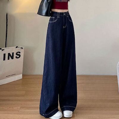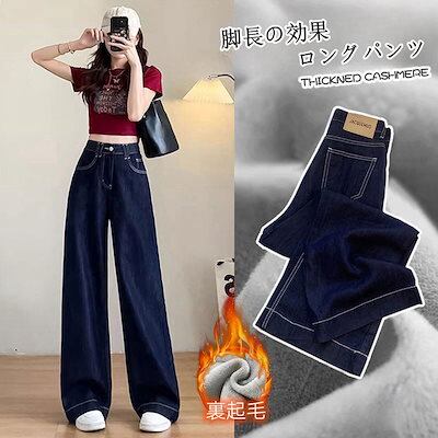 ワイドパンツ 裏起毛 デニムパンツ ロングパンツ レディース 裏起毛パンツ 体型カバー 着痩せ ゆったり 韓国ファッション