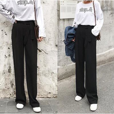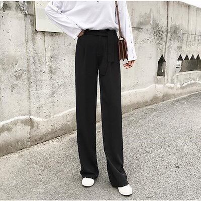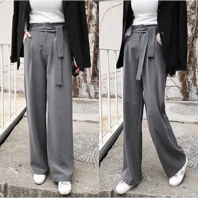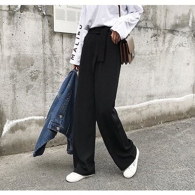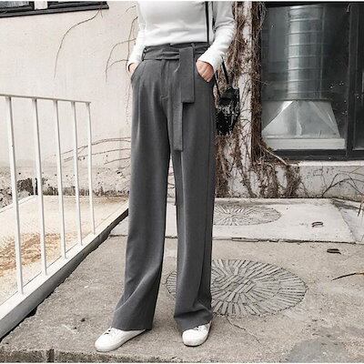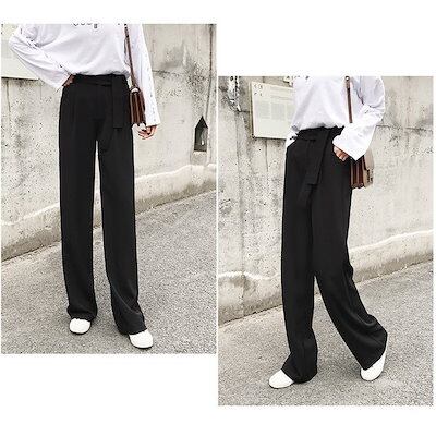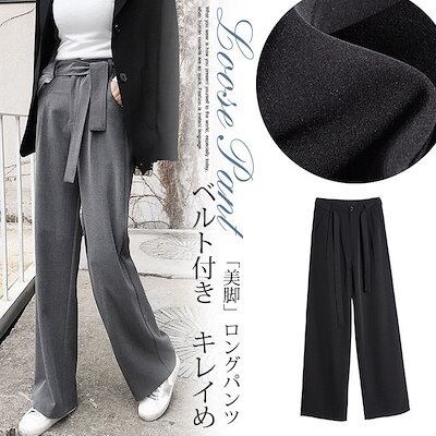 ワイドパンツ レディース 秋冬 ガウチョパンツ スラックス ロングパンツ ロング マキシ丈 ベルト付き キレイめ ハイウエスト 美脚 黒パンツ マキシパンツ コーデ 着痩せ 通勤 オフィス