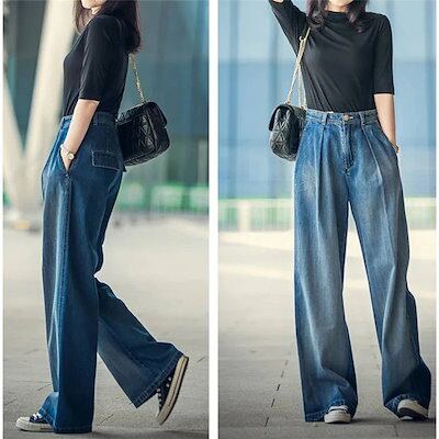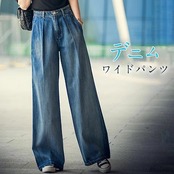 デニム ワイドパンツ デニムワイドパンツ レディース ジーンズ デニムパンツ ロングパンツ ボトムス ハイウエスト 体型カバー 大人 カジュアル 可愛い シンプル