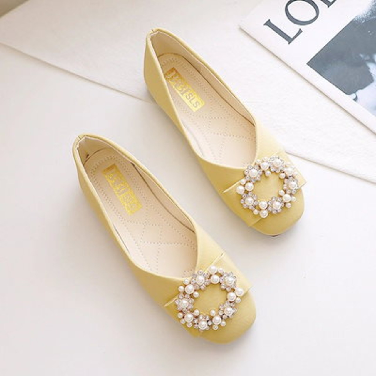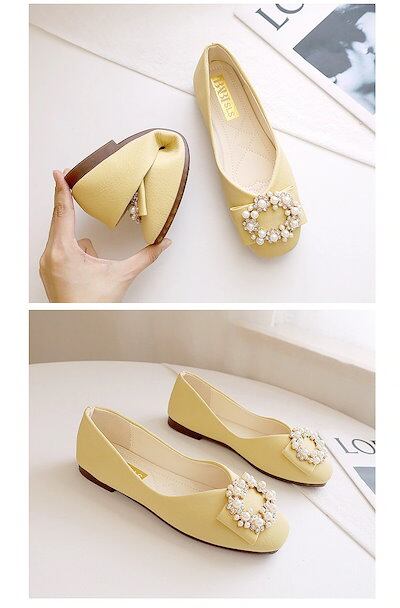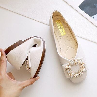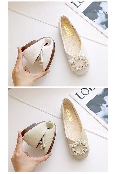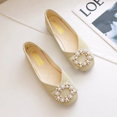 可愛いパールかぎいれキラキラフラットシューズレディース柔らかい底ローファー韓国ファッションローヒール パンプス福袋
