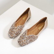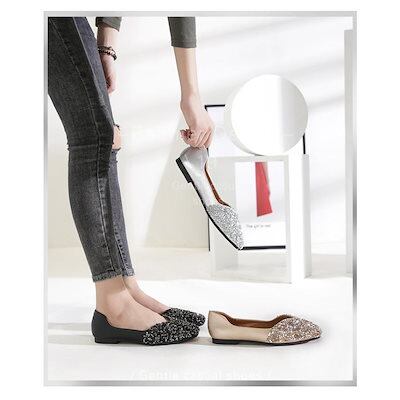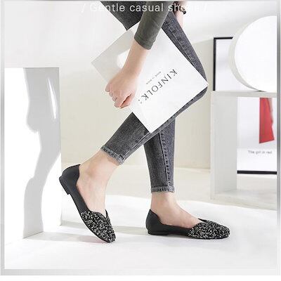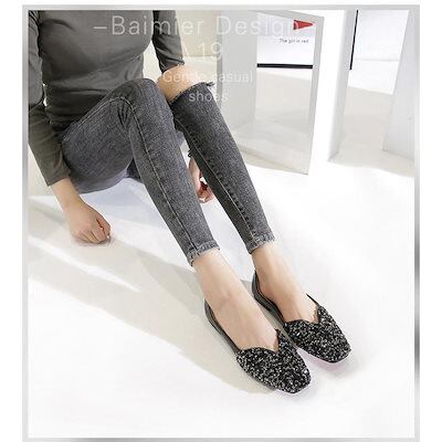 パンプス フラットパンプス レディース 春夏 パンプス スクエアトゥ 美脚 履きやすい 痛くない 靴 レディースシューズ パーティー 結婚式 キラキラ オシャレ