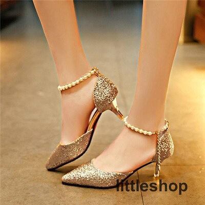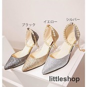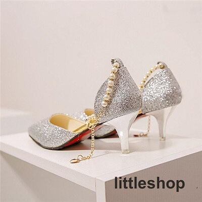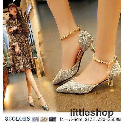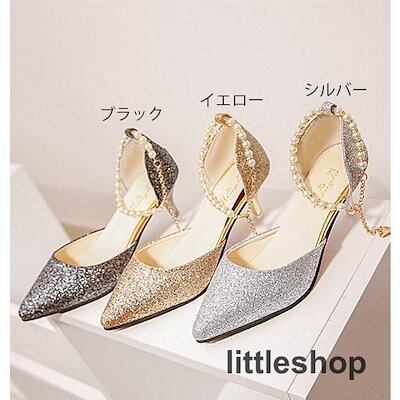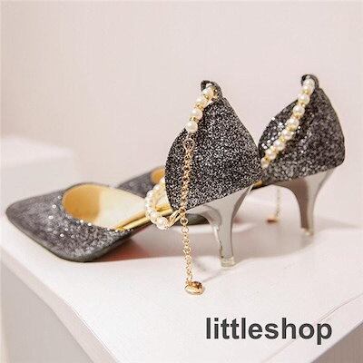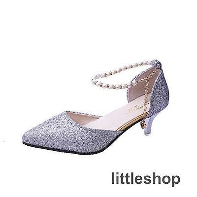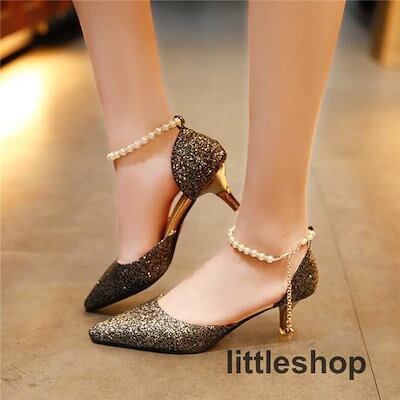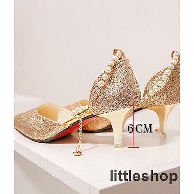 【3月新品】キラキラパンプスピンヒールとんがり走れる真珠ストラップローヒールレディース結婚式ヒール6cmオフィス歩きやすい美脚痛くない