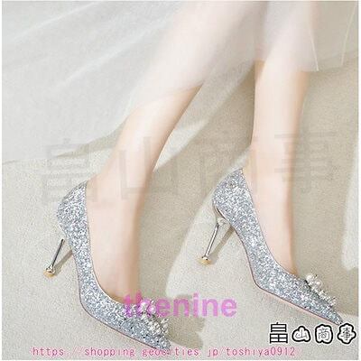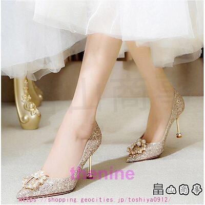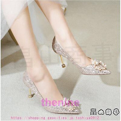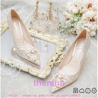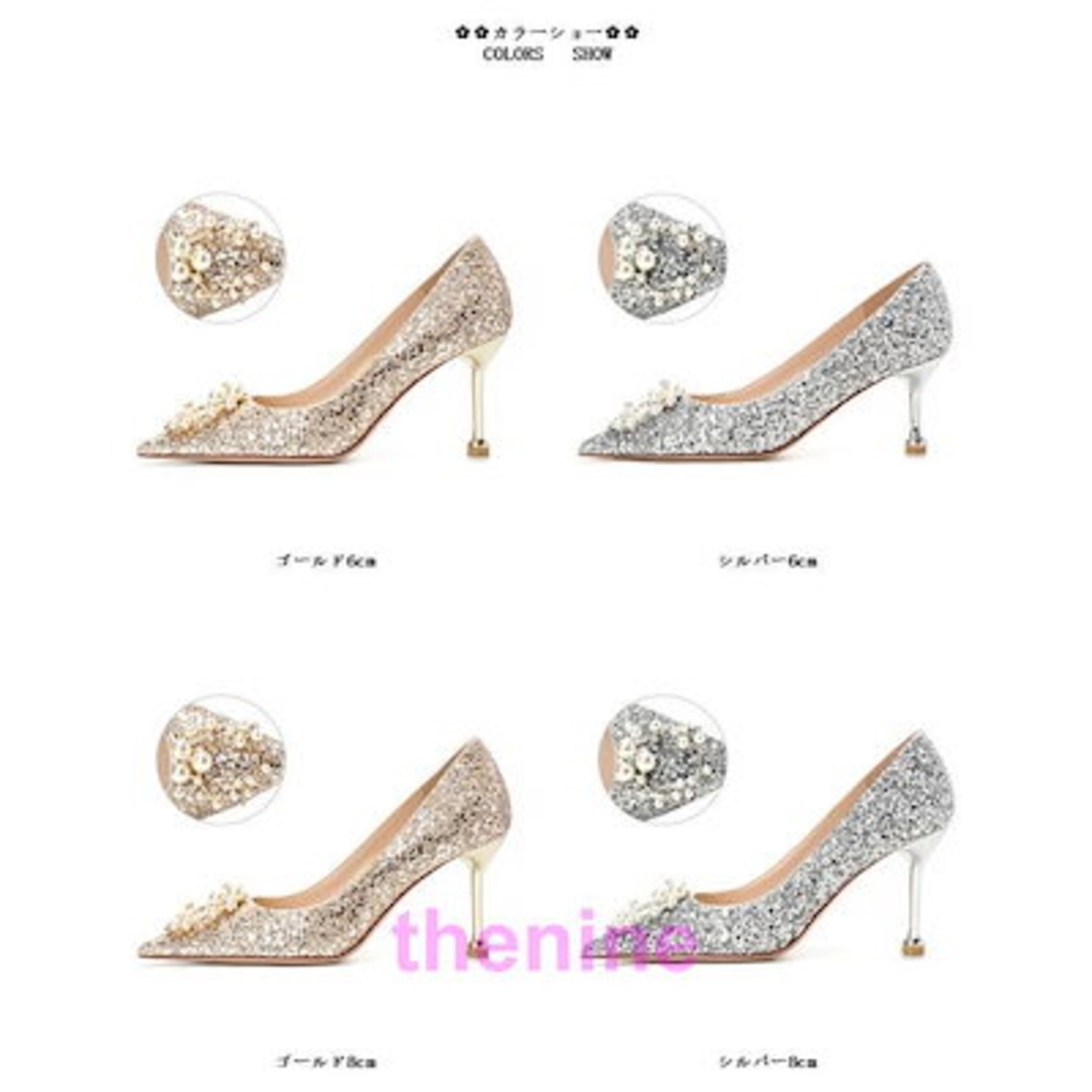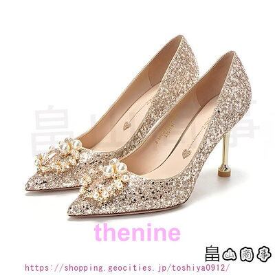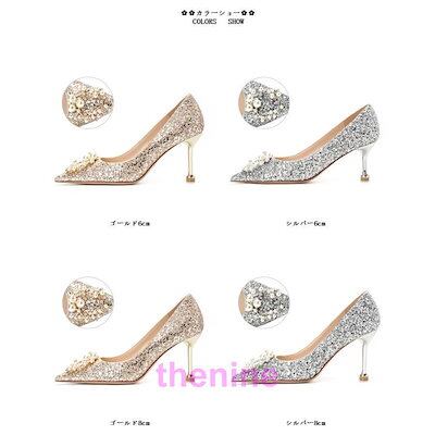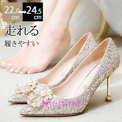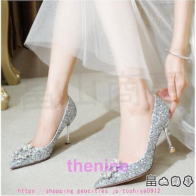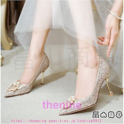 話題!パンプス キラキラ ハイヒール レディース フォーマル チャンキーヒール グリッター ラメ 結婚式 お呼ばれ パーティー