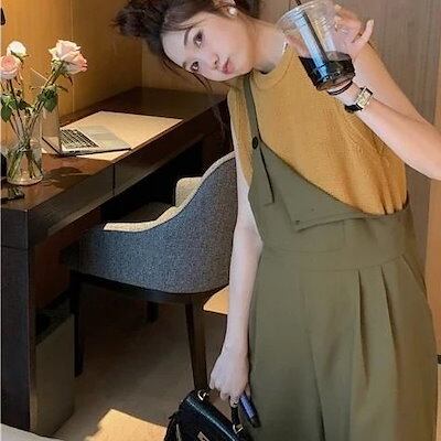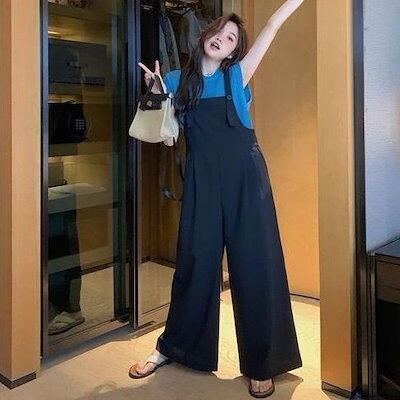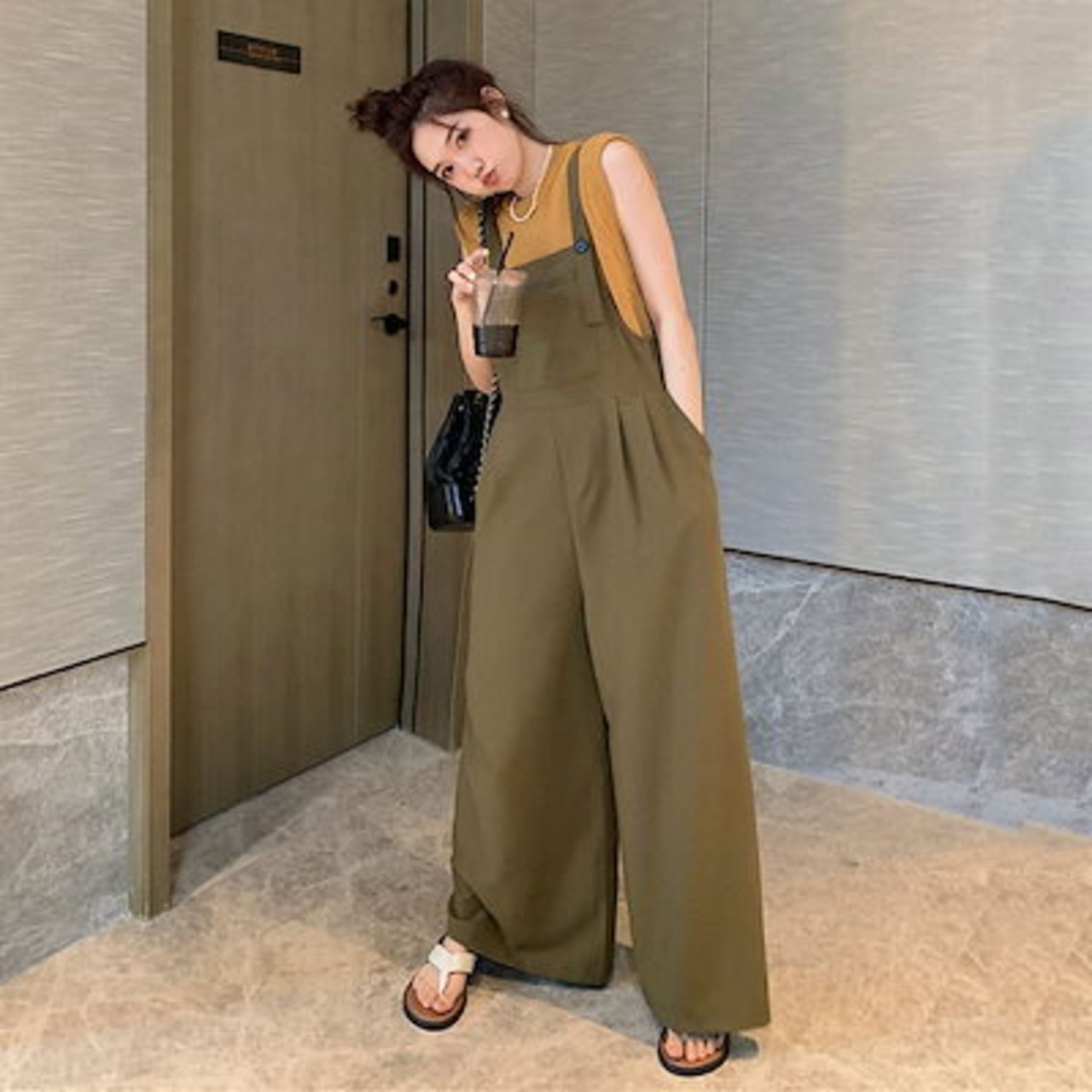 春 夏 サロペット ワイドパンツ ストレート オールインワンパンツ 大きいサイズ 韓国ファッション ゆったり 体型カバー オーバーオール レディース