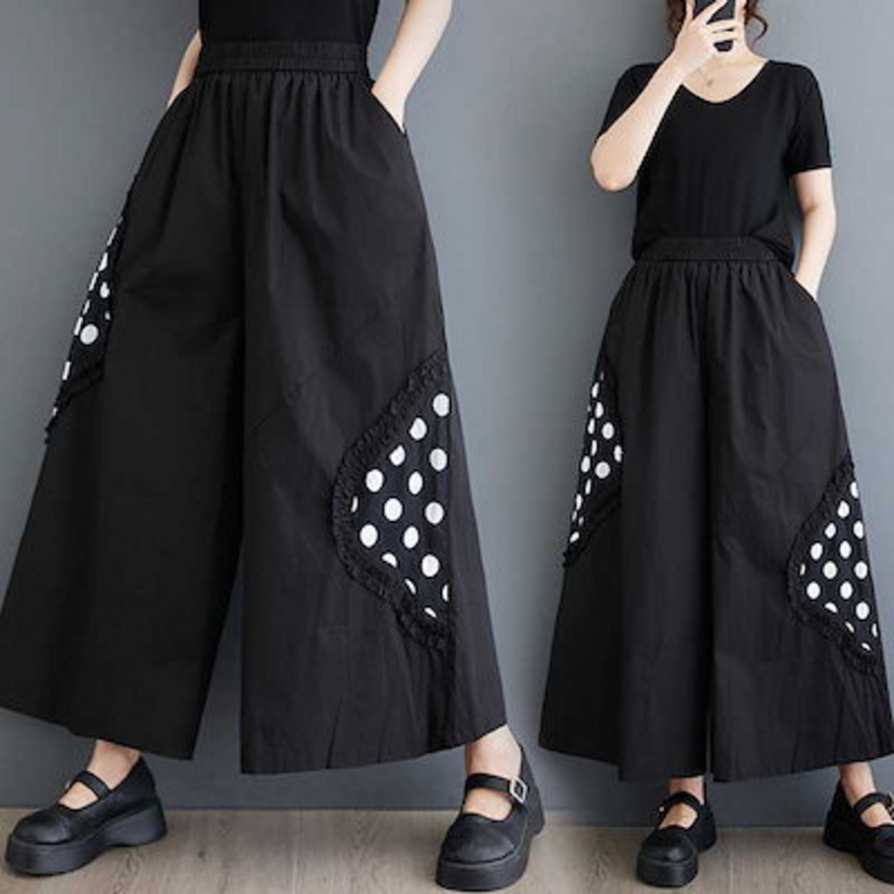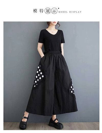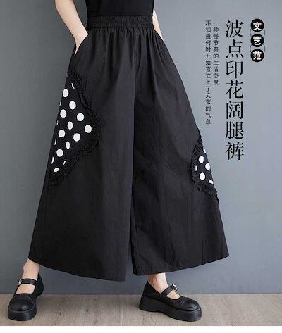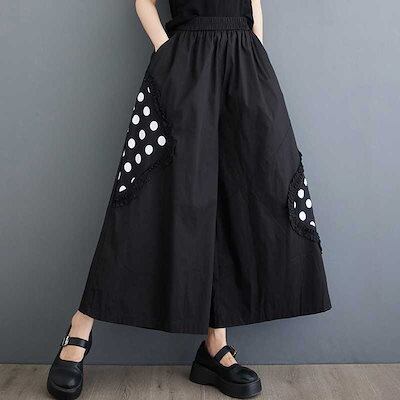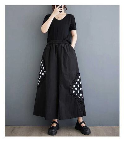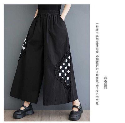 「ファットガール」 2025夏新品 キュロットスカート 水玉柄 九分丈 ワイドパンツ ゴム 体型カバー 大きいサイズ ゆったり レディース 福袋