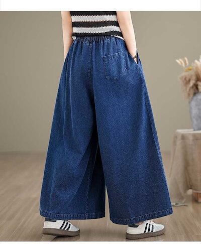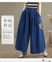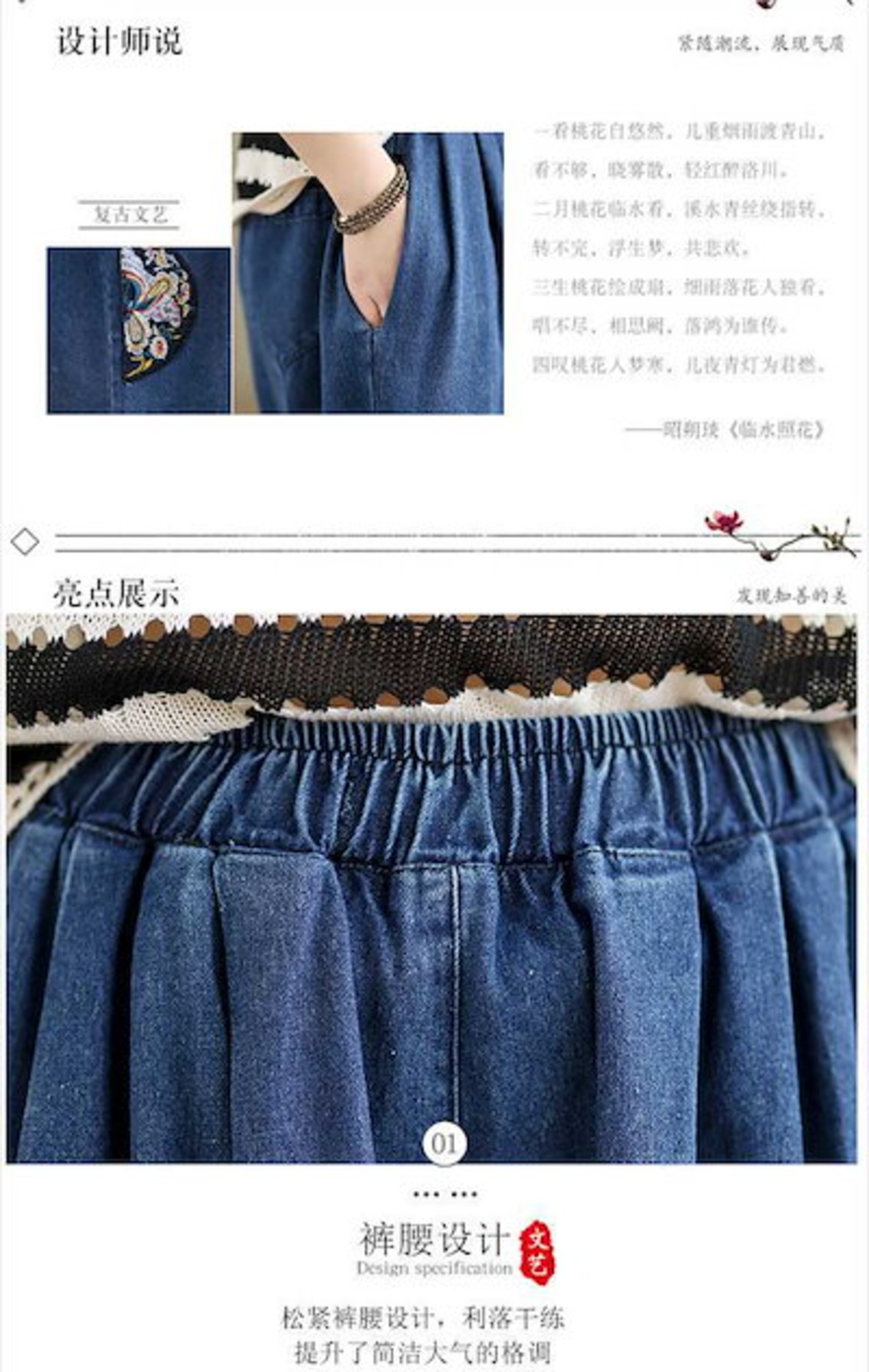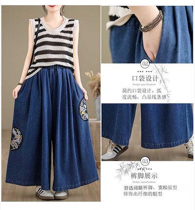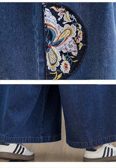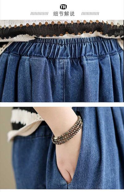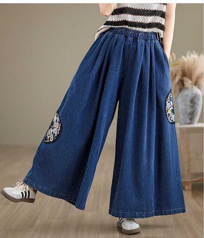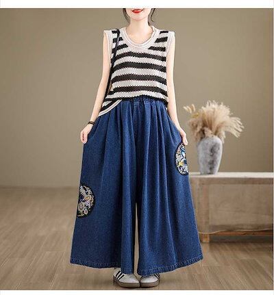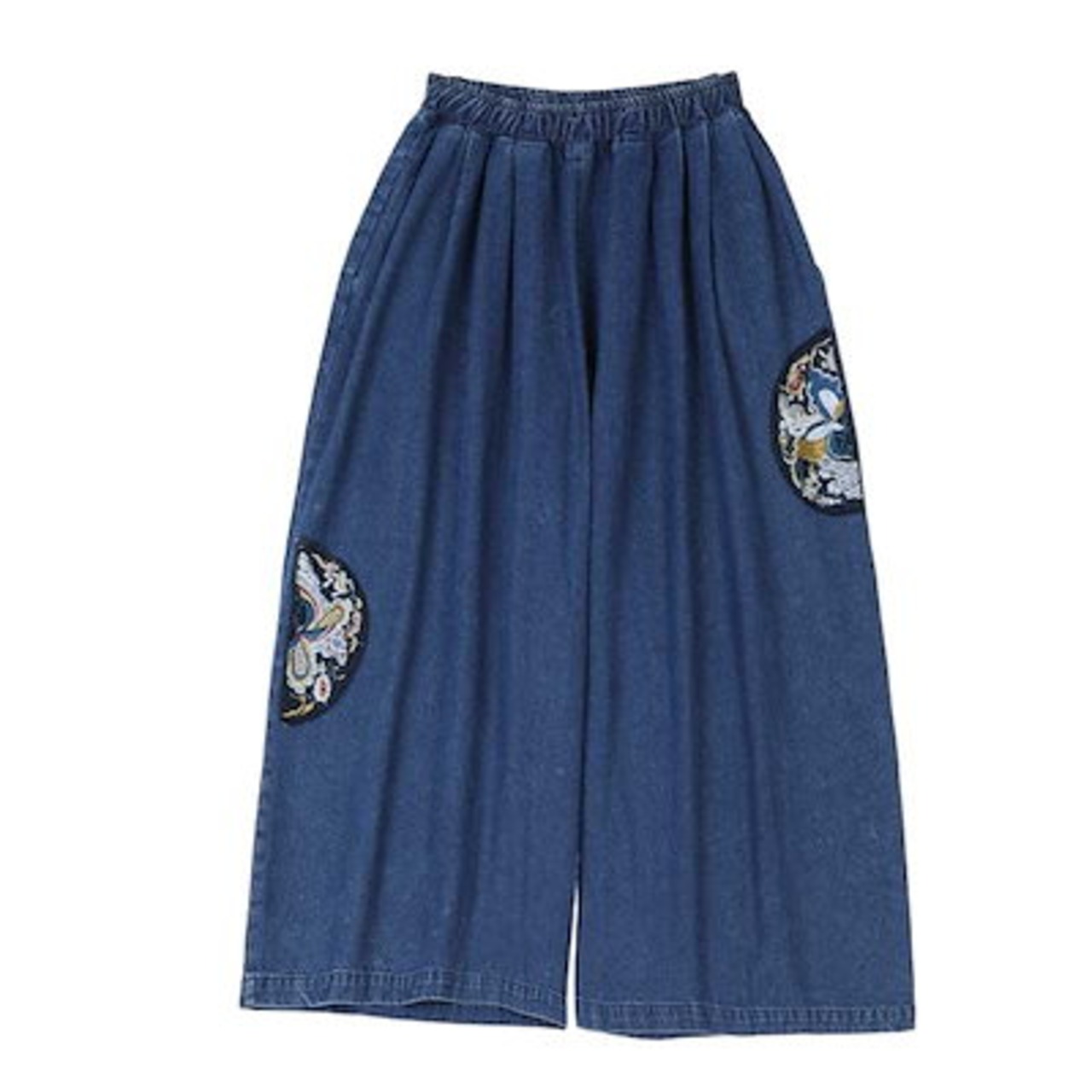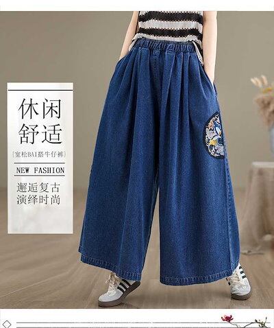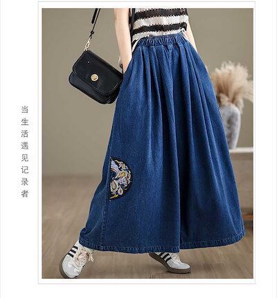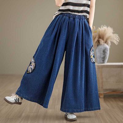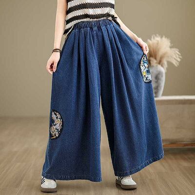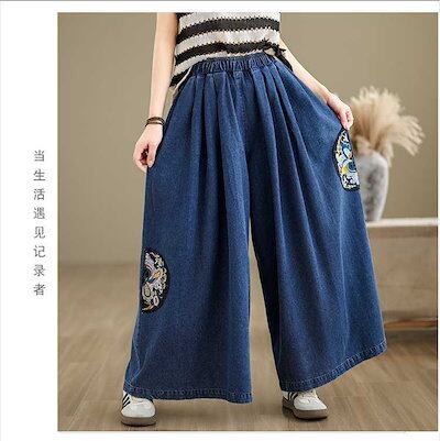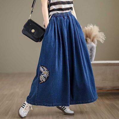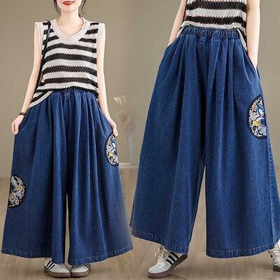 「ファットガール」 夏 デニム キュロットスカート フレアパンツ 刺繍 薄手 ワイドパンツ 体型カバー 大きいサイズ ゆったり レディース 福袋