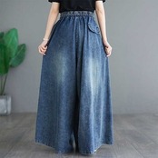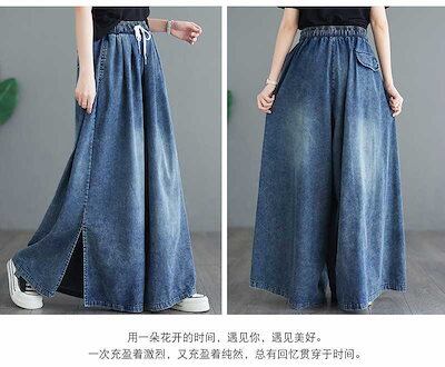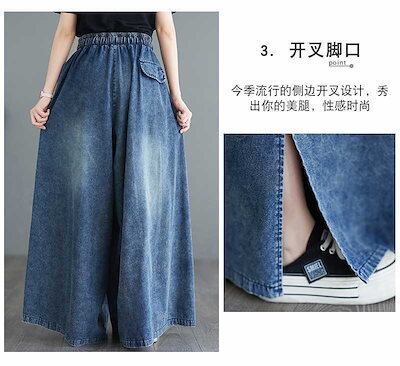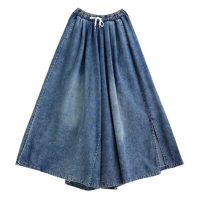 「ファットガール」 デニム ワイドパンツ キュロットスカート スリット ゴム ハイウエスト 体型カバー 大きいサイズ ゆったり レディース 福袋